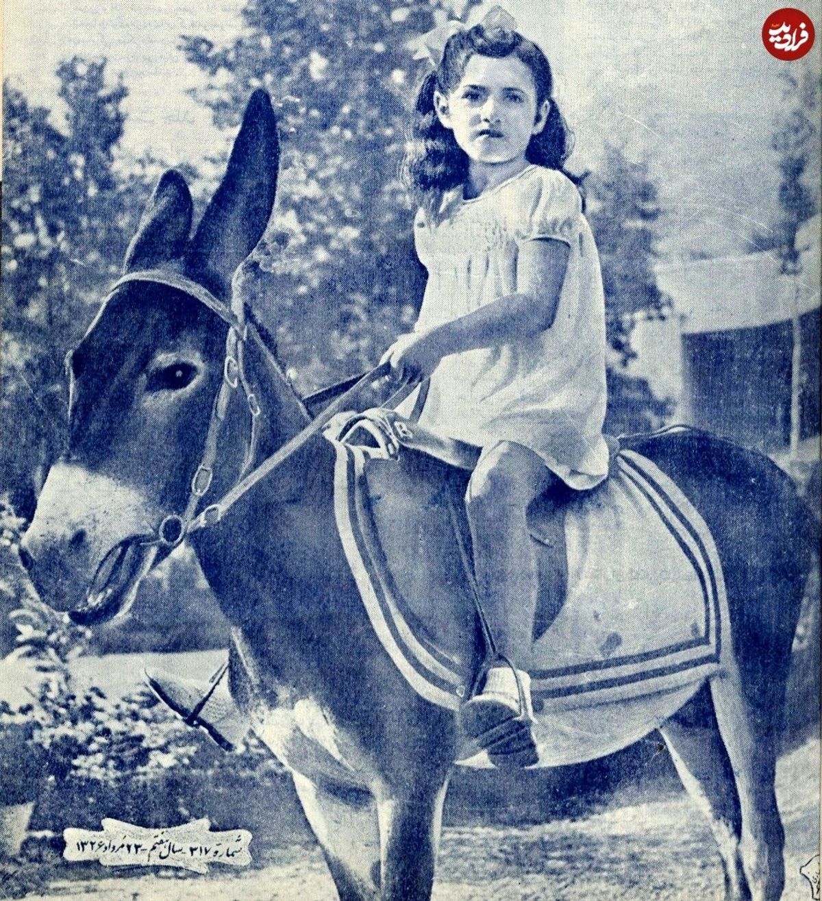 تصویری کمتر دیده شده از شهناز پهلوی، دختر محمدرضا پهلوی را سوار بر الاغ محبوب اش و در سال ۱۳۲۶ میبینید. او در این تصویر ۷ ساله است.