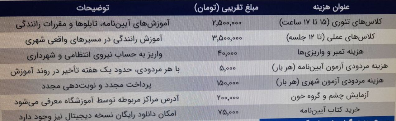 مجموع هزینه گواهینامه رانندگی چقدر است؟