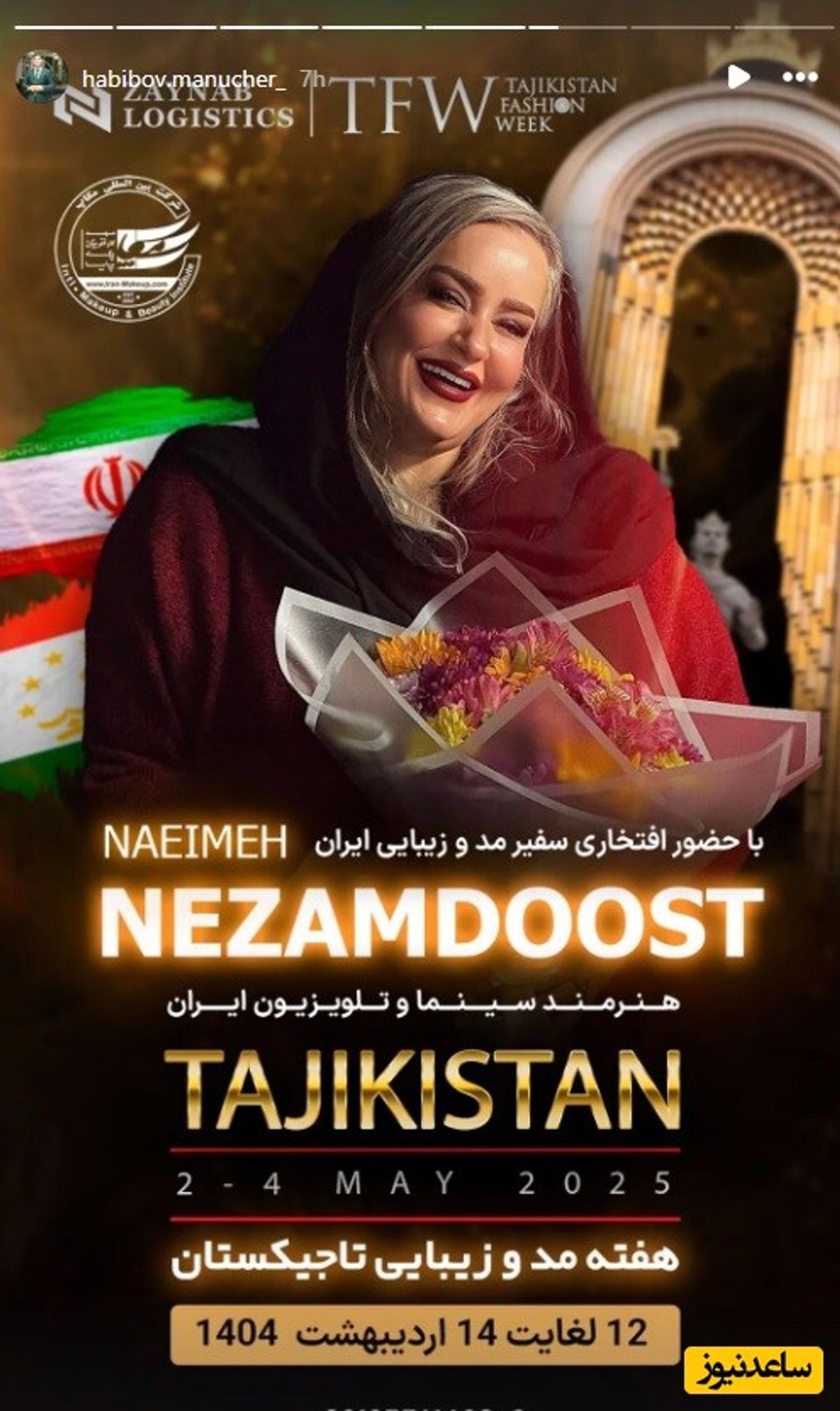 منوچهر حبیباف حضور نعیمه نظام دوست در هفته مد تاجیکستان را استوری کرد: