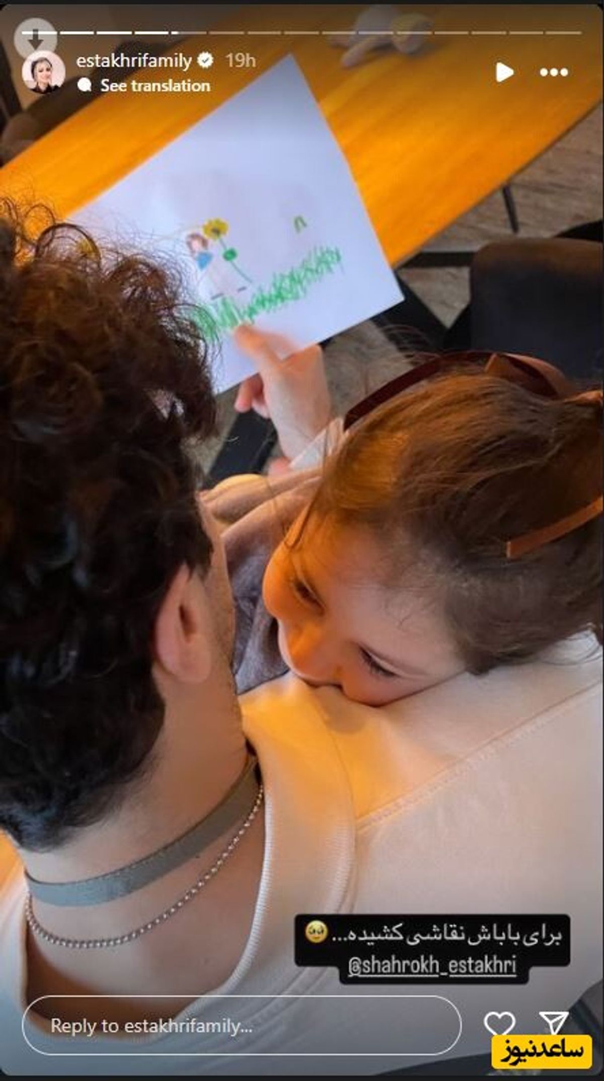 نقاشی نبات برای پدرش شاهرخ استخری؛ آغوش پدر، معنای واقعی عشق!