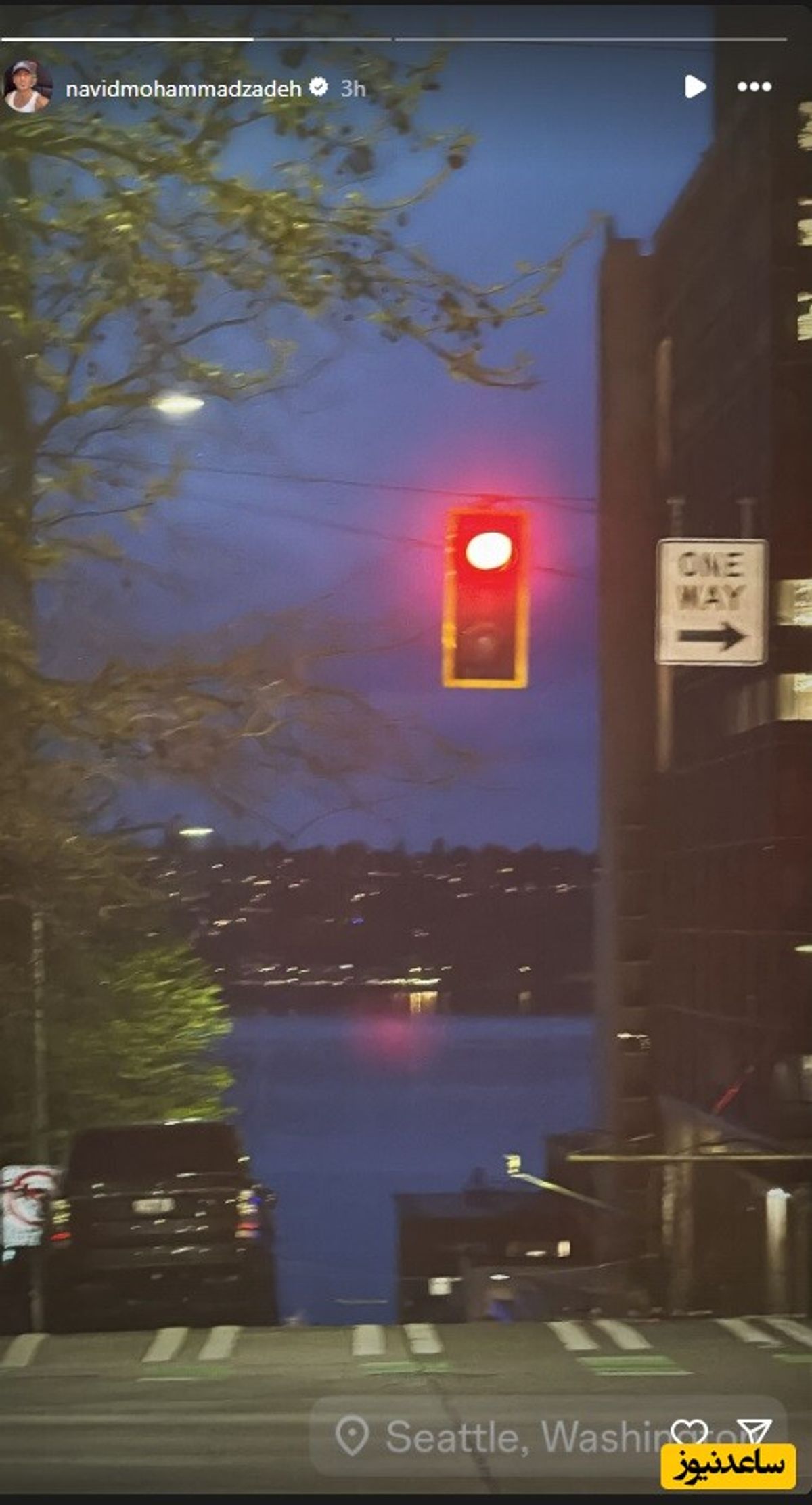 نوید محمدزاده که این روزها برای اجرای نمایش سیصد به آمریکا رفته است، تصویری از چراغ قرمز خیابانهای واشتنگتن به اشتراک گذاشت.