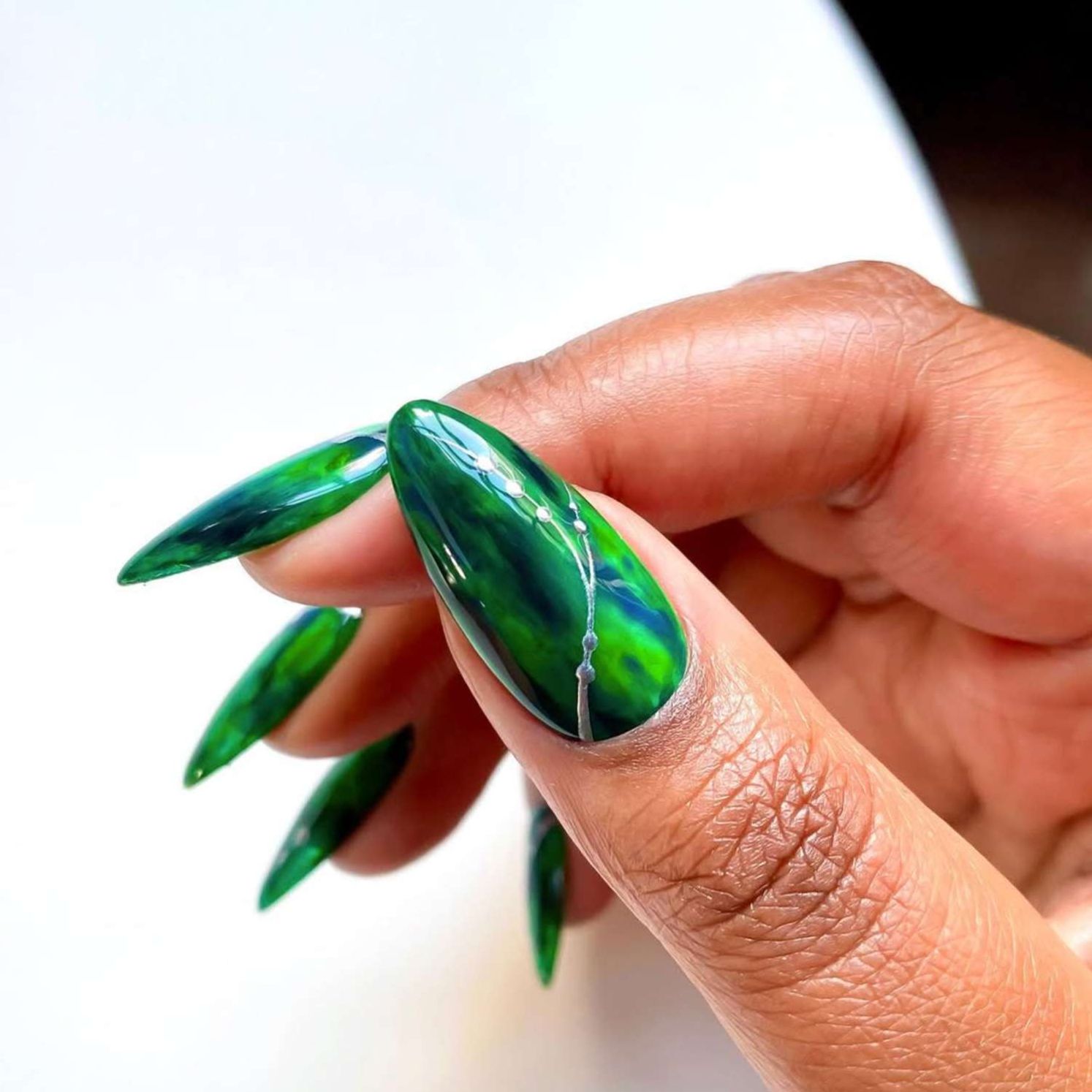 طراحی ناخن امروز 6May | ایده طراحی ناخن زمردی برای یک مانیکور متولد اردیبهشت که حسادتبرانگیز است