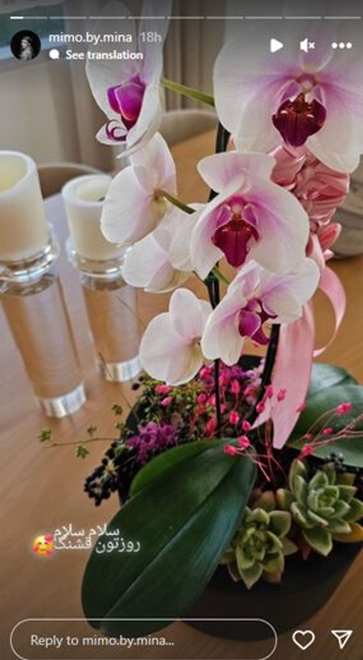 صبح عاشقانه مینا مختاری با گل های ارکیده