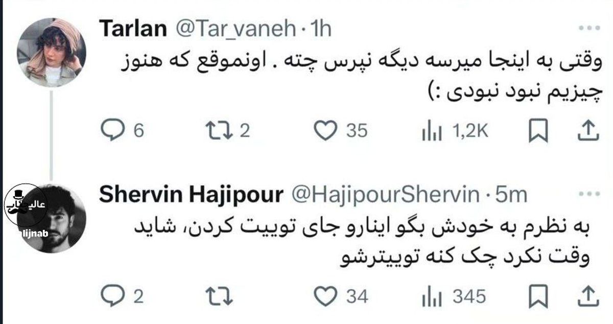 چت جنجالی ترلان پروانه و شروین در توییتر | رابطه ترلان پروانه و شروین لو رفت