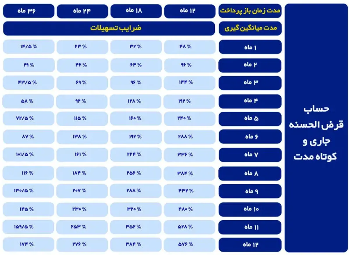 جدول ضرایب تسهیلات مرابحه با نرخ سود 14 درصد