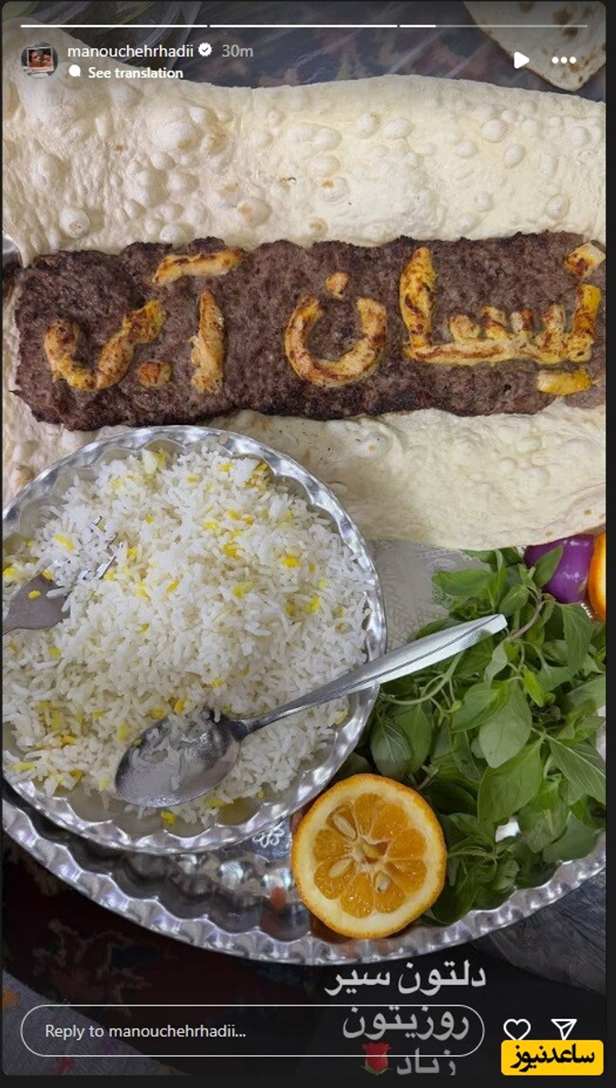 منوچهر هادی، کارگردان محبوب کشورمان، تصویری جالب و متفاوت از یک کباب خاص را با کاربرانش به اشتراک گذاشت. این کباب توسط اوستا آشپز ویژه برای او تهیه شده بود و روی آن با خلاقیت خاصی عبارت "نیسان آبی" حک شده بود، که اشارهای به سریال موفق او دارد.