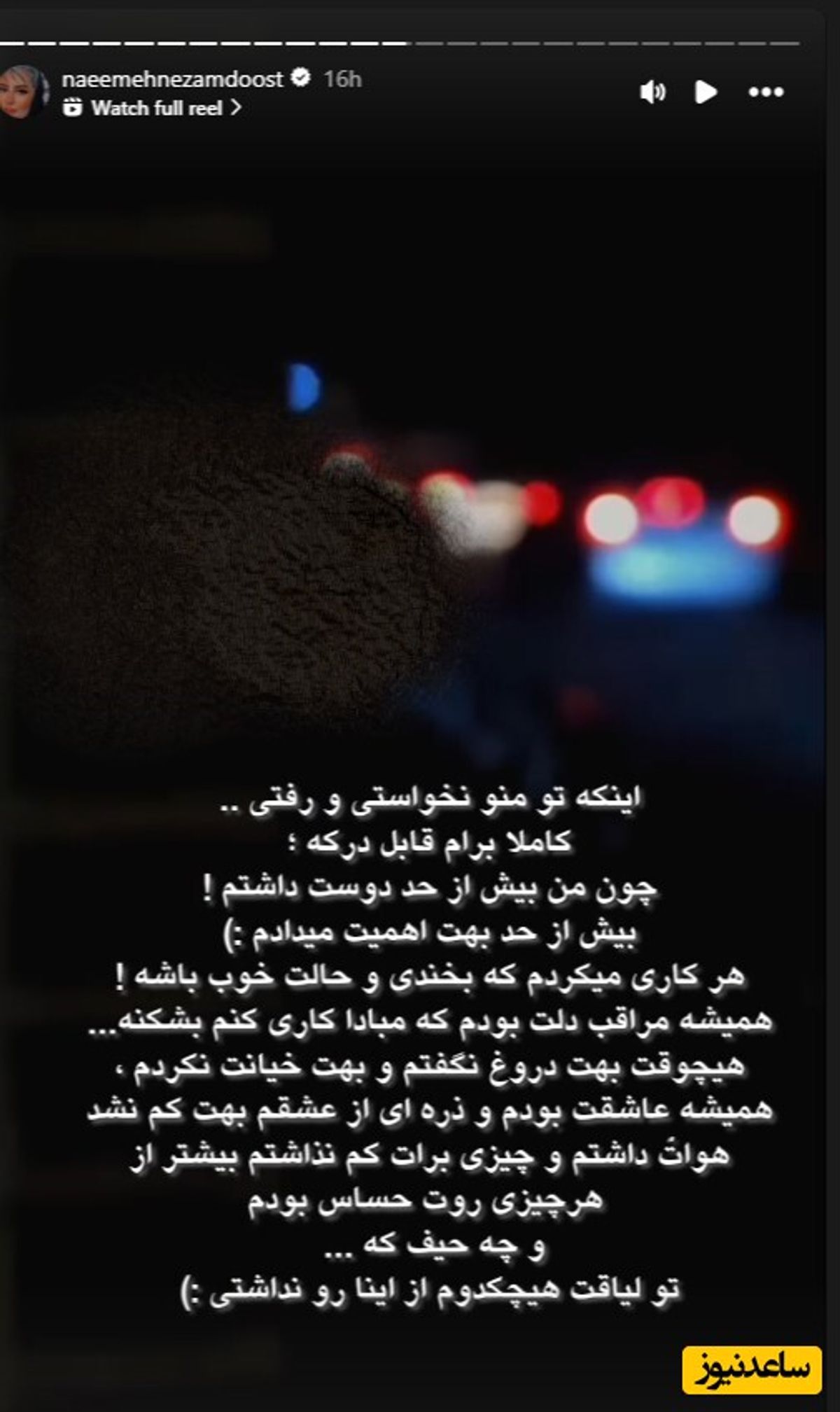 نعیمه نظامدوست اخیراً در صفحه اینستاگرام خود متنی احساسی و پر از گلایه منتشر کرد که واکنشهای زیادی را به همراه داشت. او در این نوشته، به یک عشق نافرجام اشاره کرده و از فردی که دوستش داشته، اما قدر محبتهایش را ندانسته، گلایه کرده است. نظامدوست با لحنی صریح و احساسی نوشت که چگونه در این رابطه تمام تلاشش را برای خوشحالی طرف مقابل انجام داده، اما در نهایت بیمهری دیده است.