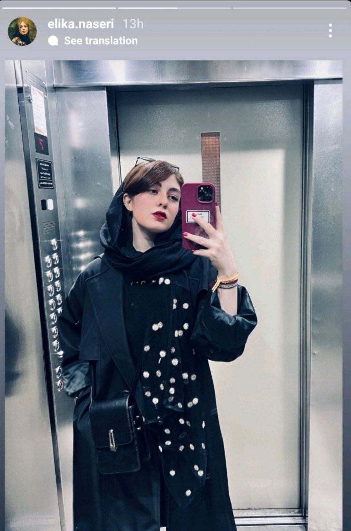 سلفی زیبای الیکا ناصری بازیگر سریال گردن زنی با آینه آسانسور| استایل پاییزی الیکا ناصری