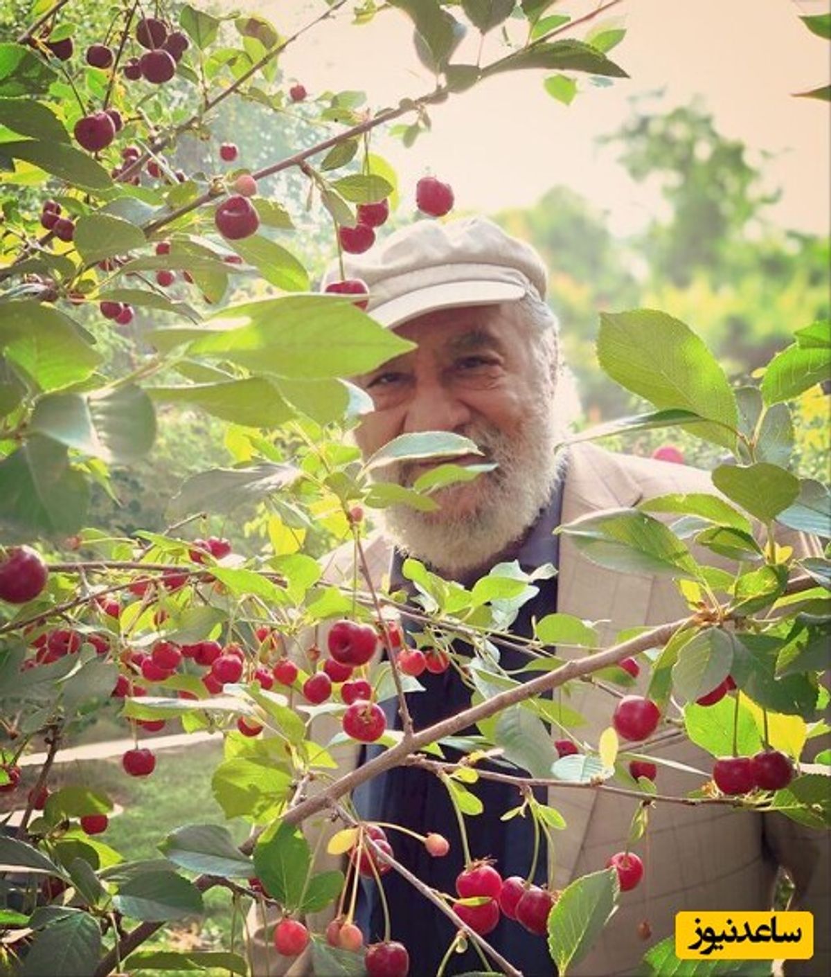 تصویری از داریوش ارجمند، بازیگر پیشکسوت سینما، تئاتر و تلویزیون در باغش مشاهده می کنید.