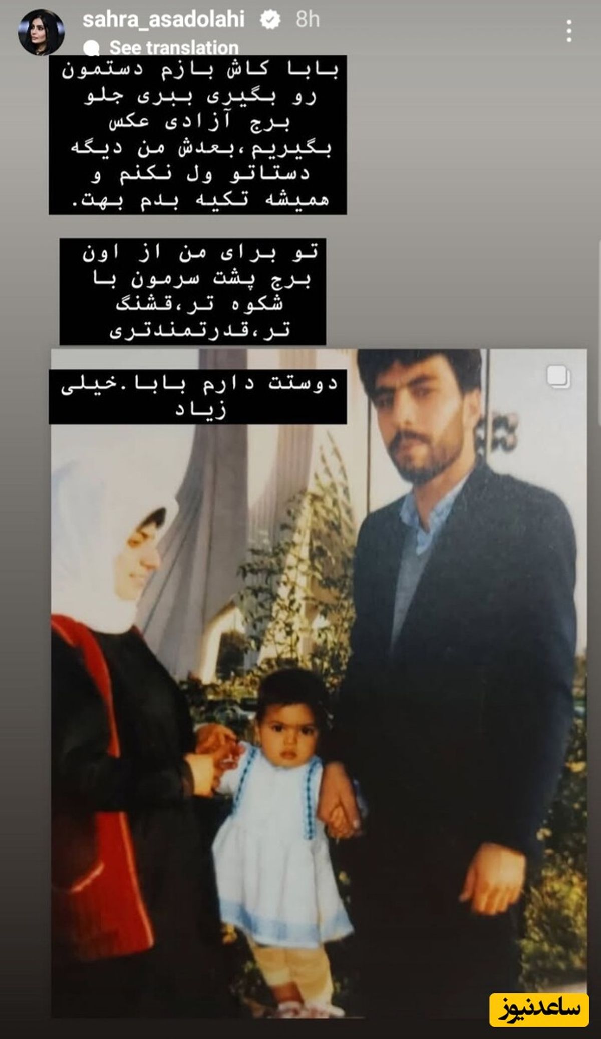 صحرا اسداللهی تصویری از کودکی اش در کنار پدر مرحومش منتشر کرده است.