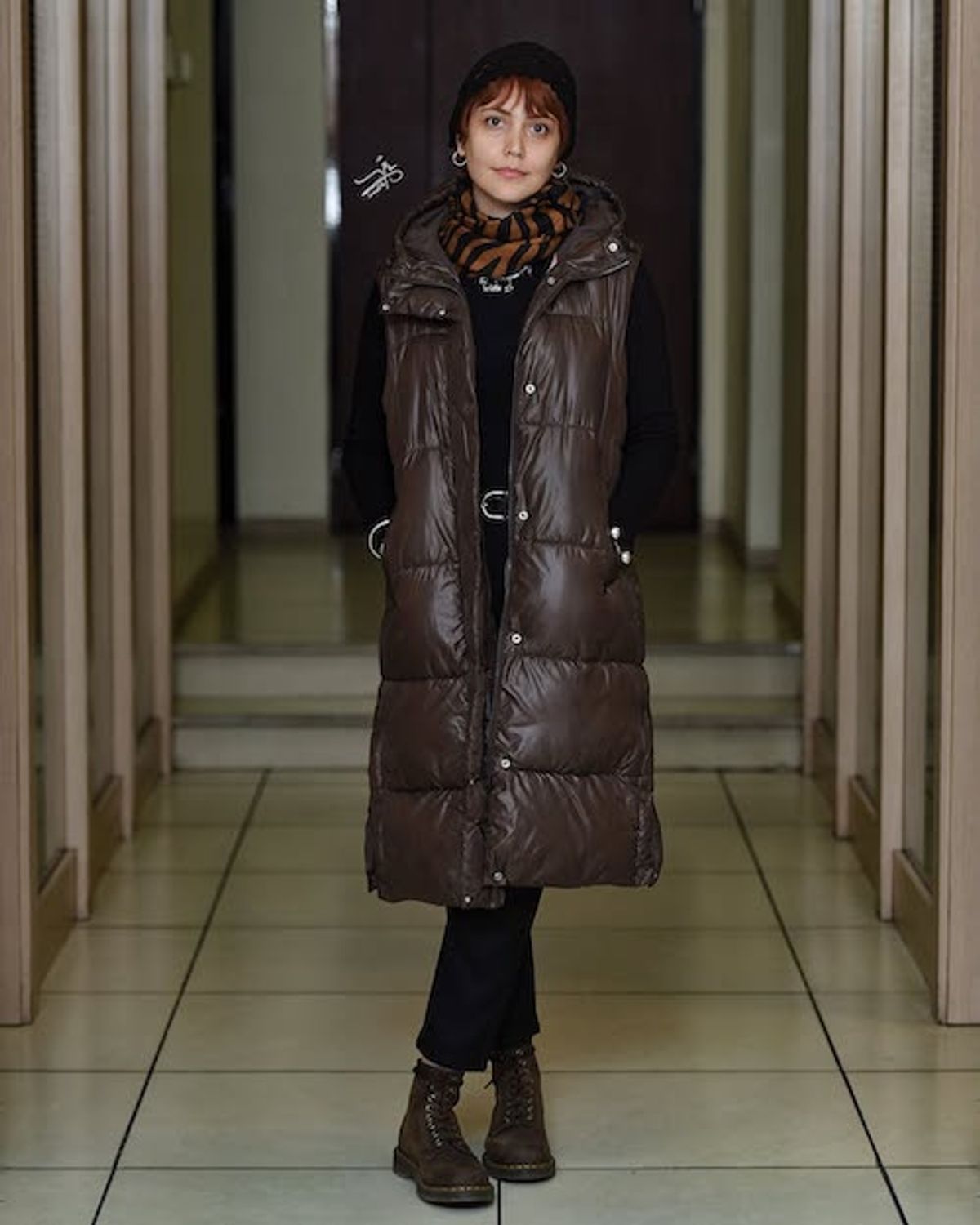 کلاه مشکی او به این استایل جلوهای شیک و مرموز بخشیده بود و در کنار آن، استفاده از یک بیگاسکارف با طرح ببری، جذابیت و هیجان خاصی به ترکیب کلی ظاهرش اضافه کرده بود. این انتخاب نشان از آگاهی او نسبت به ترندهای روز و توانایی در ترکیب عناصر مختلف برای خلق استایلی متفاوت داشت. علاوه بر این، شبنم قربانی برای تکمیل استایل خود از یک پافر قهوهایرنگ استفاده کرده بود که در کنار تم مشکی لباسهایش، تضاد رنگی قابل توجهی ایجاد میکرد. این انتخاب نهتنها باعث شد که استایل او از یکنواختی خارج شود، بلکه گرمایی متعادل به ظاهر او افزود و جلوهای مدرن و زمستانی به تیپش بخشید. گرچه این استایل برای فضای اکران کمی غیررسمی بود و بیشتر مناسب مراسم فتوکال به نظر میرسید.