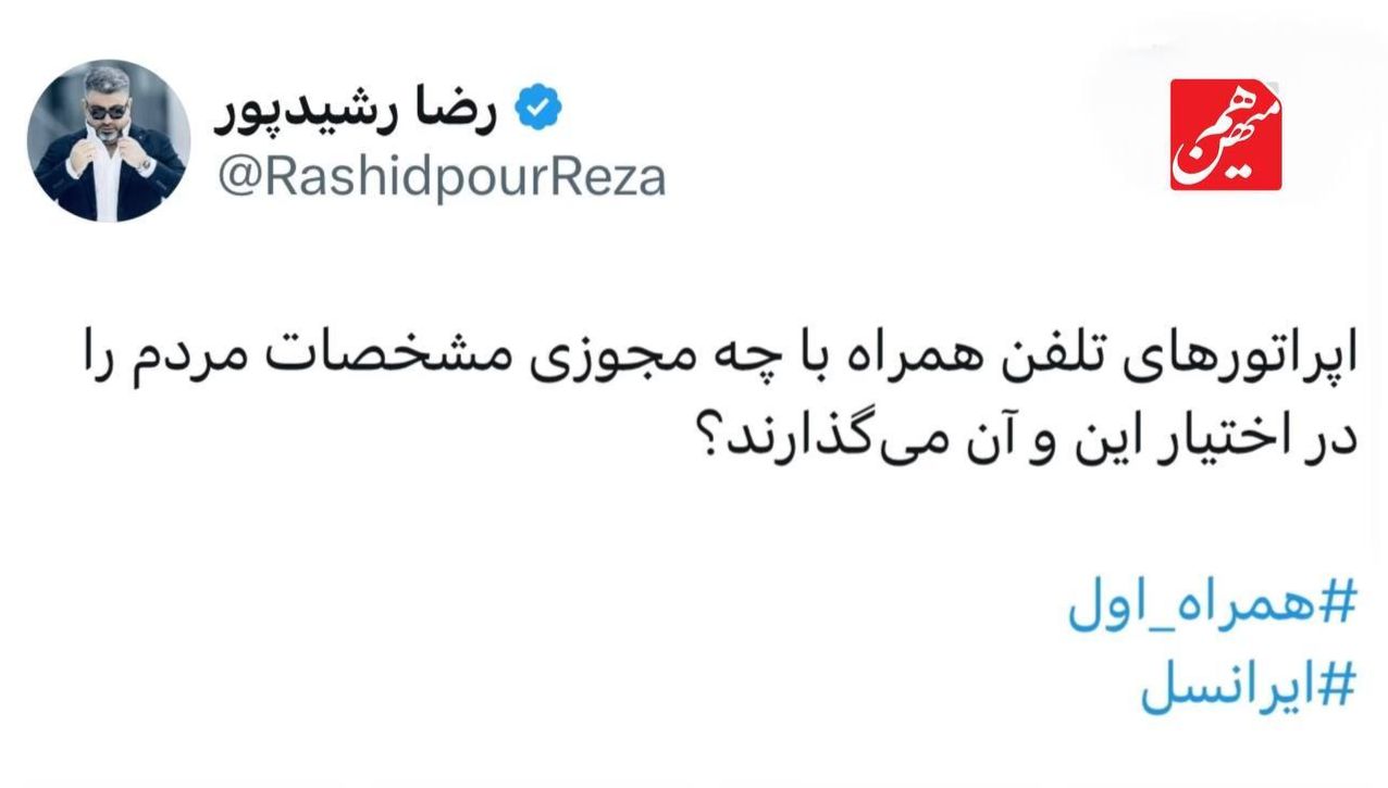 حمله رضا رشیدپور به اپراتورهای موبایل: اپراتورها با چه مجوزی مشخصات مردم را در اختیار این و آن میگذارند؟