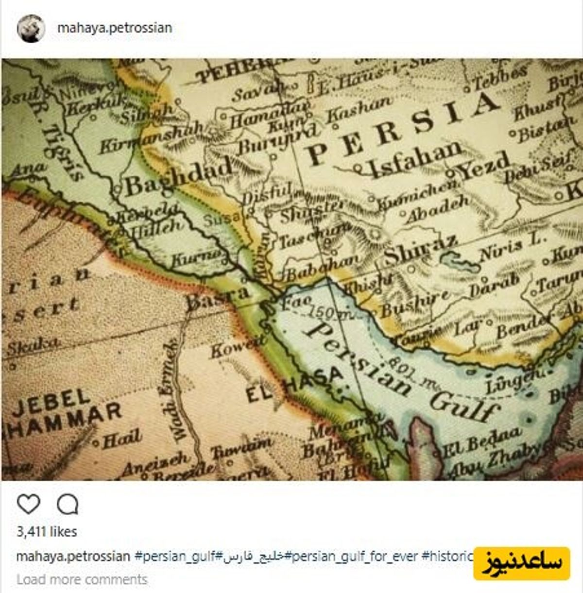 ماهایا پطروسیان هم همانند شهاب حسینی تصویر نقشهای را همراه با هشتگهای خلیج فارس به فارسی و انگلیسی منتشر کرده است.