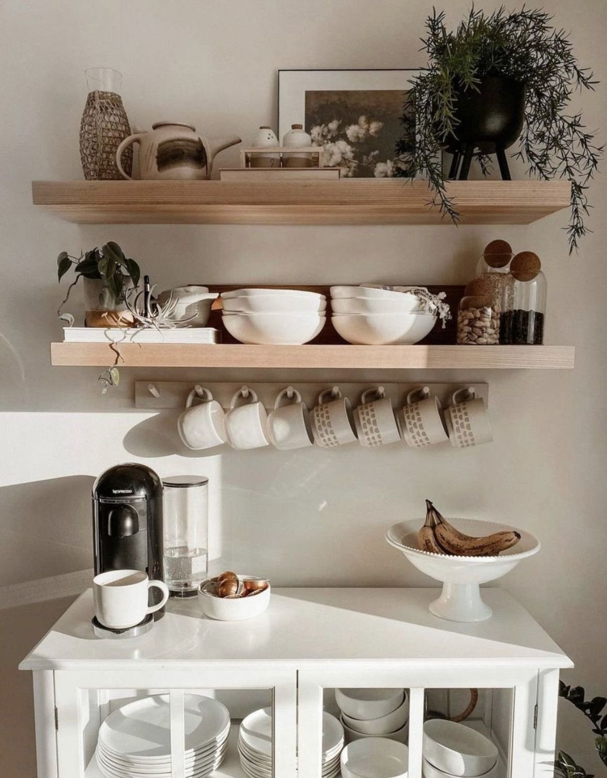 09 | قفسههای باز نصب کنید تا ظروف قهوه شیک خود را به نمایش بگذارید