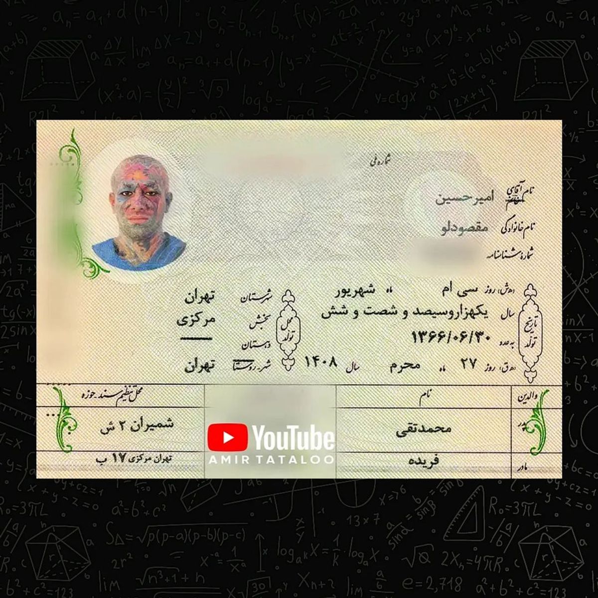 کانال یوتیوب امیر تتلو خواننده زندانی با انتشار پستی نوشت : اولین «شناسنامه با چهرهای کاملاً تتوشده» در تاریخ ایران ثبت شد!