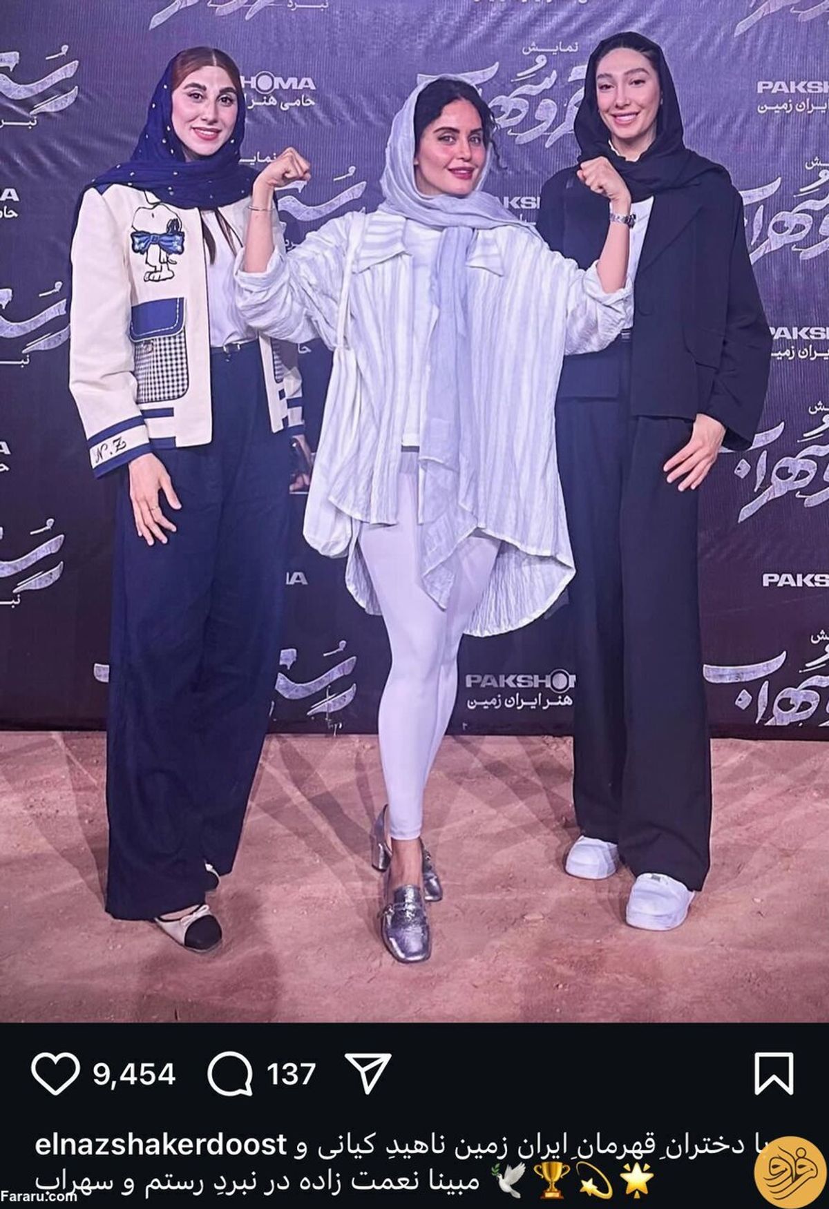 فیگور جالب الناز شاکردوست در کنار دختران المپیکی ایران | ناهید کیانی و مبینا نعمتزاده تماشاگر نبرد رستم و سهراب.