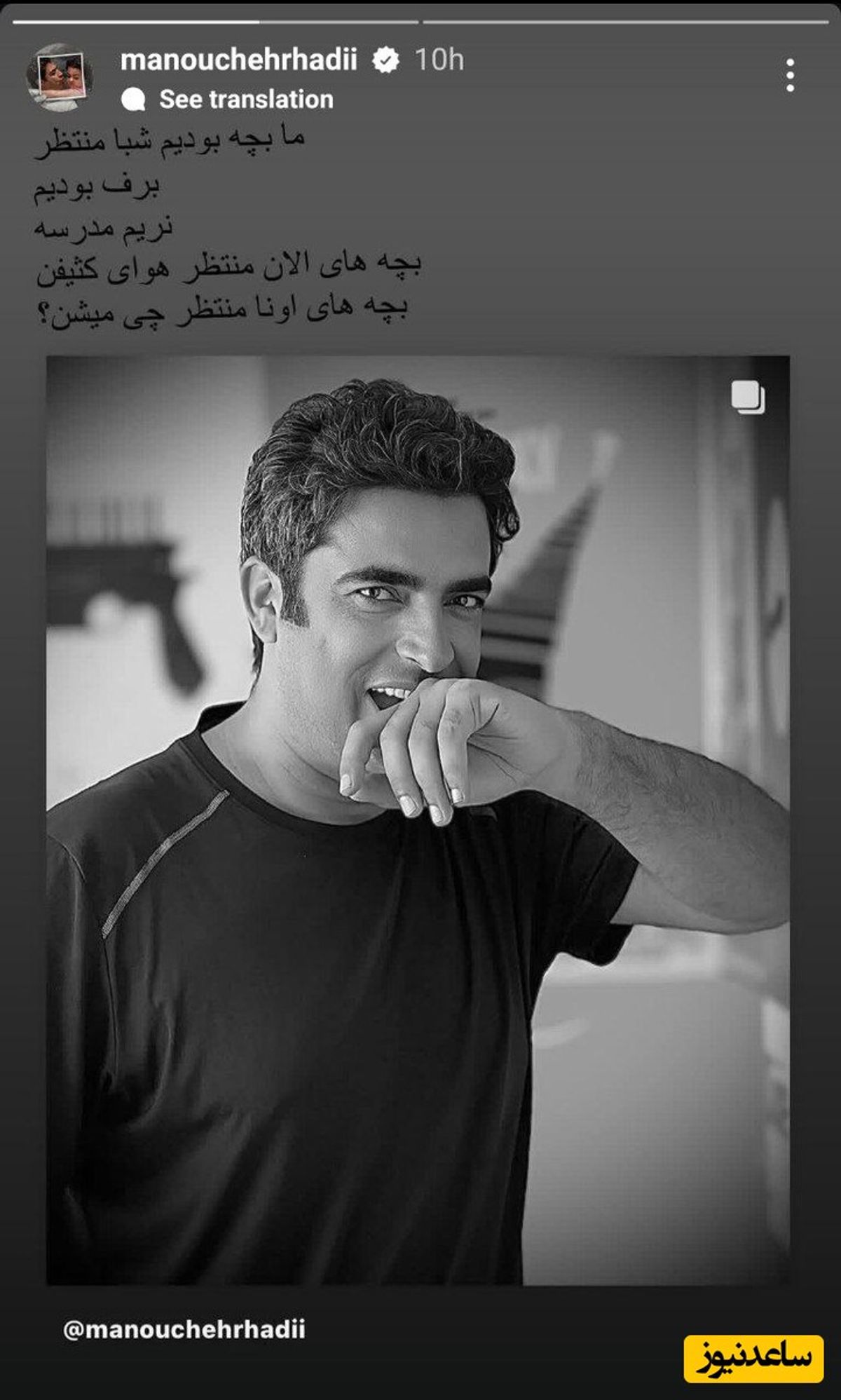 منوچهر هادی کارگردان سینما یک استوری قابل تامل در خصوص آلودگی هوا منتشر کرد. برای دیدن اخبار و حواشی جذاب با ما همراه باشید.