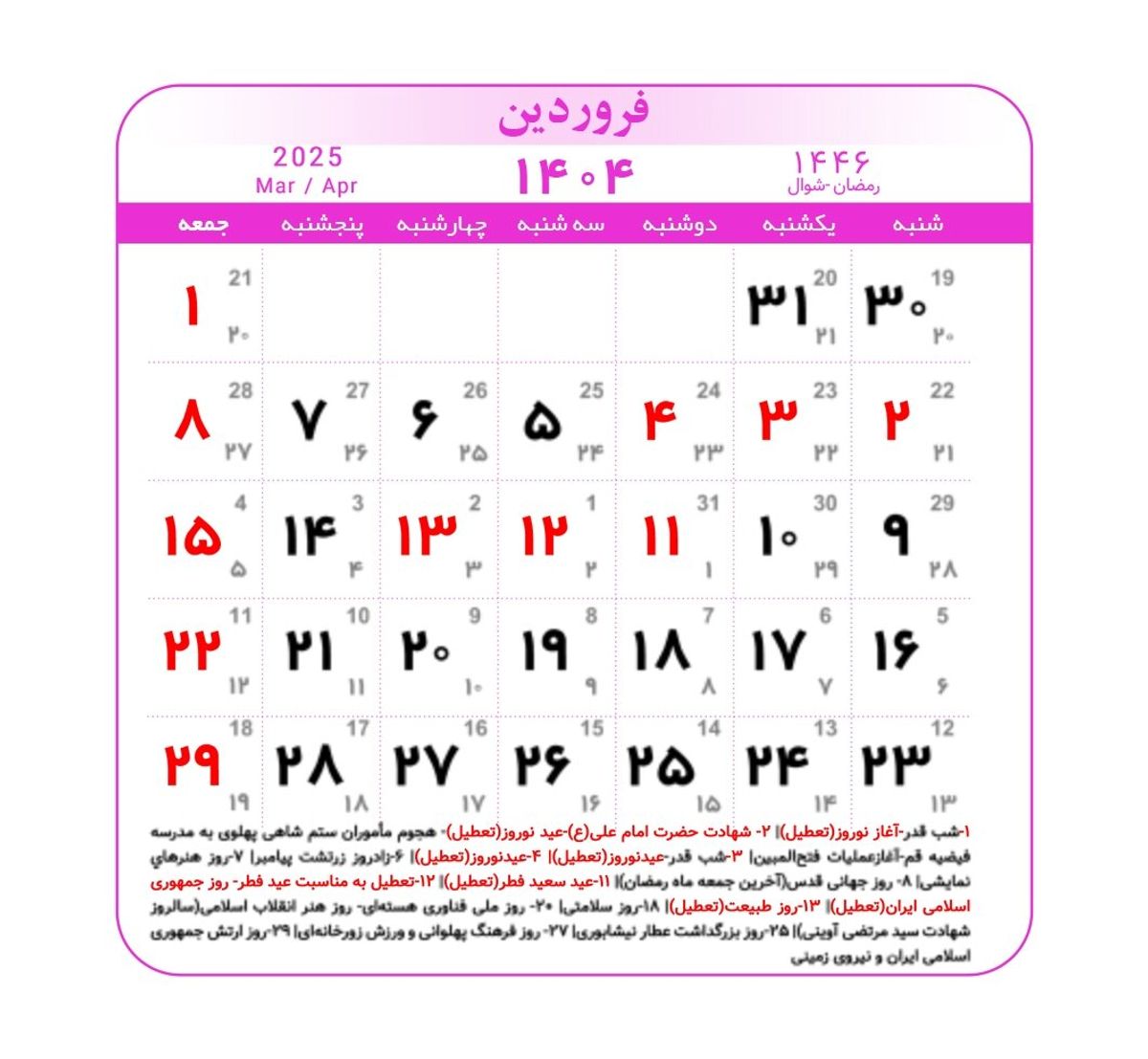 تعطیلات و مناسبتهای فروردین ۱۴۰۴