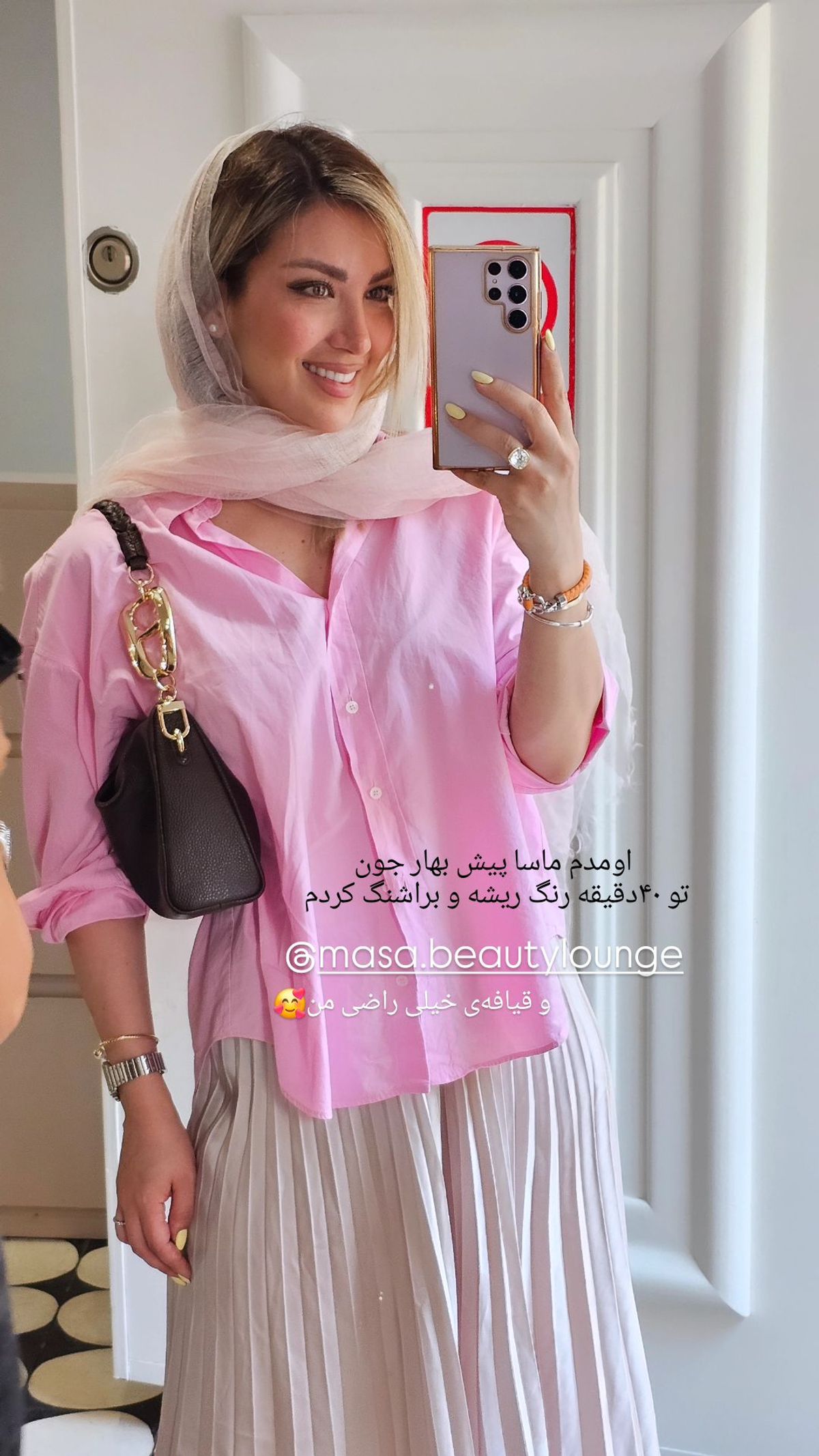 تیپ تابستونی همسر بهرام رادان توی پاییز | مینا مختاری لباس های صورتی اش را از کمد درآورد
