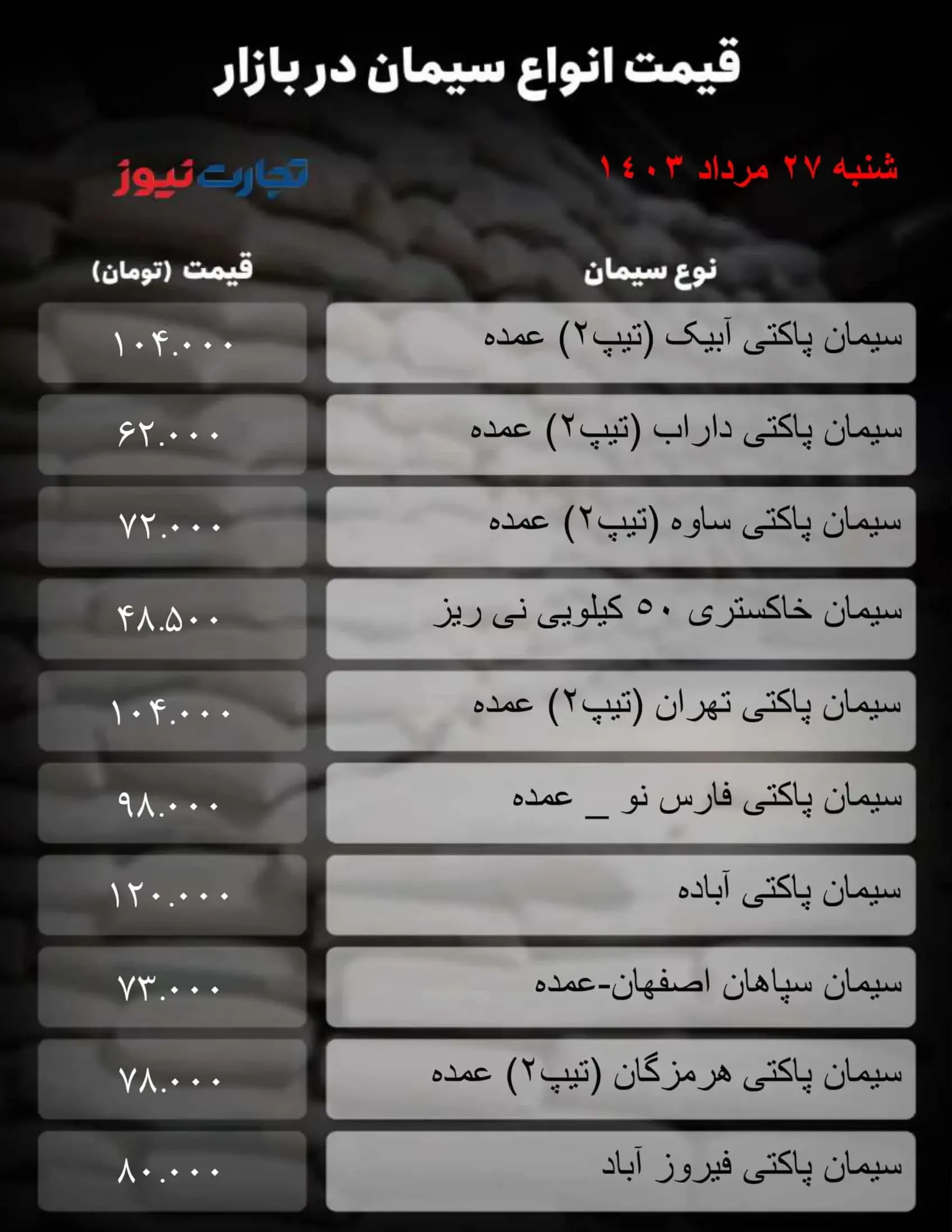 سیمان پاکتی آباده هم در مبادی ورودی ۱۲۰ هزار تومان قرار گرفت.
