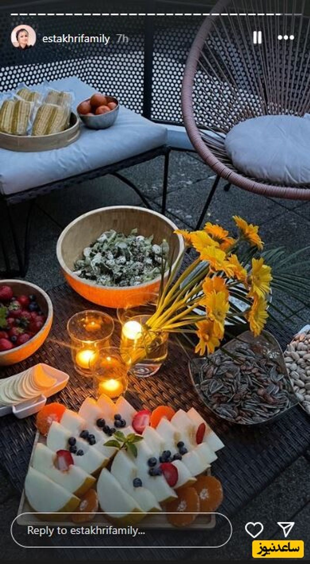 تصویری از استوری سپیده بزمی پور همسر شاهرخ استخری را مشاهده بفرمایید. وی میز پذیرایی که برای پذیرایی از خانواده برادرش را آماده کرده است ملاحضه می کنید.