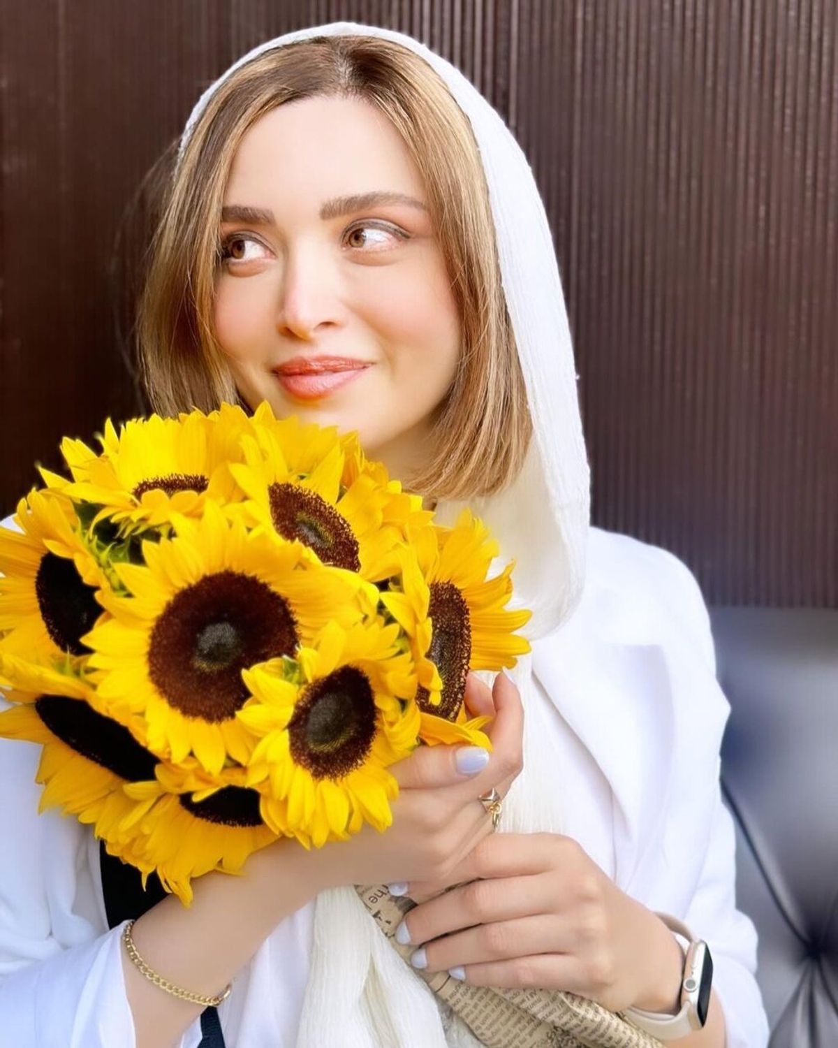 عکس جدید بهنوش طباطبایی با گل آفتابگردان | نگاه پر احساس بهنوش طباطبایی مقابل دوربین