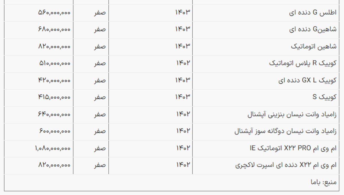 با مطالعه جدول زیر اطلاعات کاملی درباره قیمت روز خودروهای ایرانی در بازار به دست خواهید آورد.