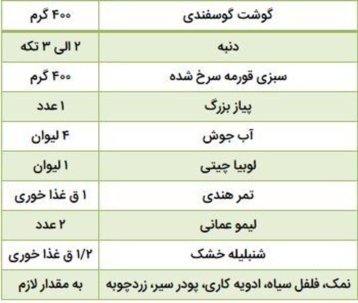 به گزارش پارسی دی، غذاهای سنتی ایرانی در هر شهری که تهیه میشوند طعم و مزه بسیار خوبی دارند مخصوصا غذاهای جنوبی طعم و مزه فوق العاده دارد و رنگ آن سیاه میباشد و برای چاشنی بجای آبلیمو یا لیمو عمانی از تمر هندی استفاده میشود که باعث میشود طعم و مزه خوبی به قورمه سبزی بدهد ترکیب سبزی قورمه تره، جعفری دوبرابر گشنیز، شوید و اسفناج یا چغندر که باید ریز ریز ساطوری شود و خوب تفت دهید تا سیاه شود، ولی نسوزد و حتما از روغن جامد استفاده کنید.