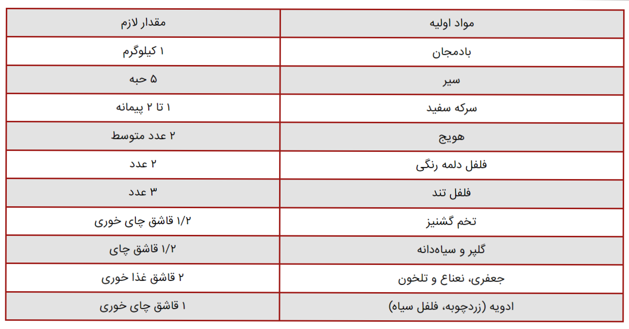 فوتوفن: این مقدار اولیه برای آمادهکردن ۲ تا ۳ ترشی لیتهبادمجان مناسب است.