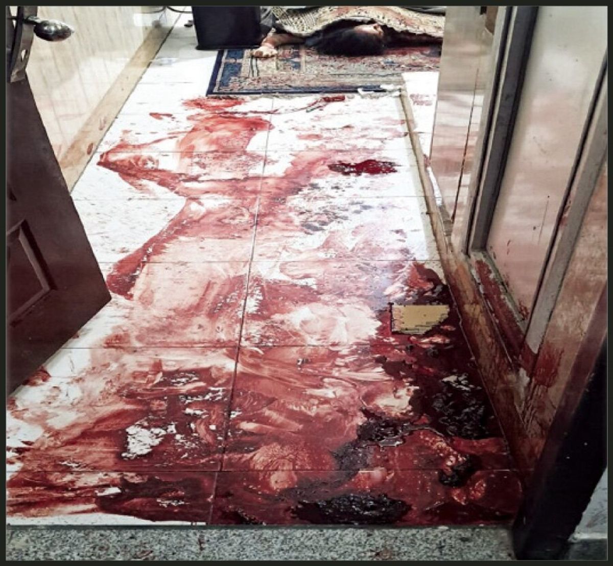 دقایقی بعد قاضی صادق صفری به همراه گروهی کارآزموده از افسران اداره جنایی پلیس آگاهی مشهد عازم منزل ۵۰ متری (محل وقوع جنایت) شدند. دستگیره در ورودی ساختمان شکسته بود و حوضچههای کوچکی از خون بر کف سرامیکهای سفید حکایت از جنایتی تکاندهنده داشت. کمی آن سوتر جسد زن جوان روی زمین قرار داشت که آثار متعدد چاقو بر نقاط پیکر وی خودنمایی میکرد.