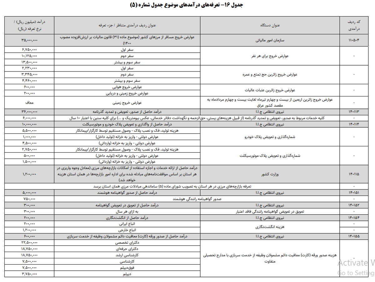 بنا به قانون بودجه سال ۱۴۰۴ کل کشور که از سوی رئیس مجلس شورای اسلامی برای اجرا ابلاغ شد، عوارض خروج از کشور به شرح جدول زیر اعلام شد.
