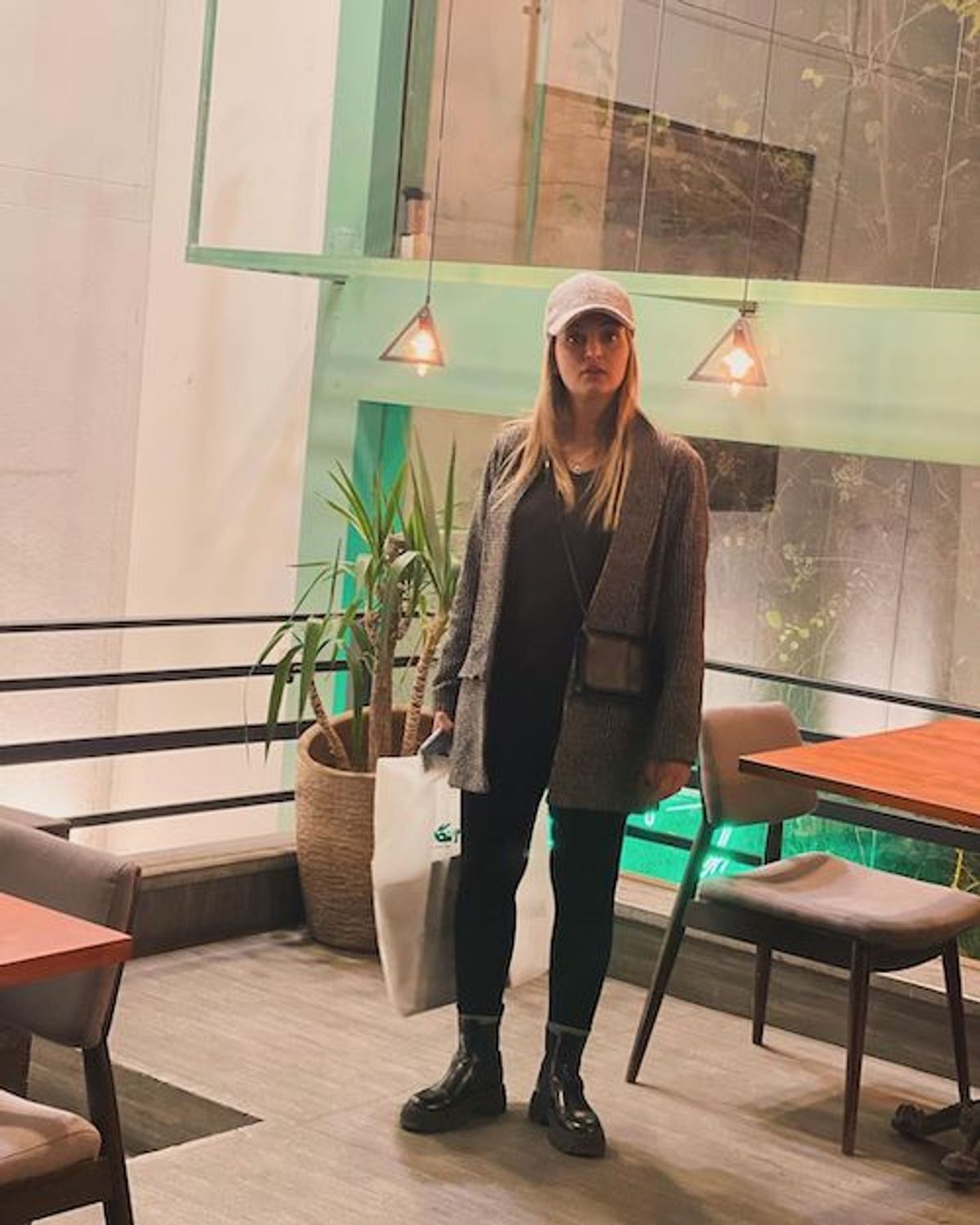 این بازیگر ۳۴ ساله در پست جدید اینستاگرامش، استایلی که برای حضور در یک کافه کتاب تدارک دیده را به نمایش گذاشتهاست. او با بلوز و شلوار لگ مشکی، نیمبوتهایی به همین رنگ، کلاه کپ کرمی، کیف کوچک مشکی به صورت کراسبادی و کت چهارخانه و پاییزیاش، تیپی جذاب را نشان دادهاست.