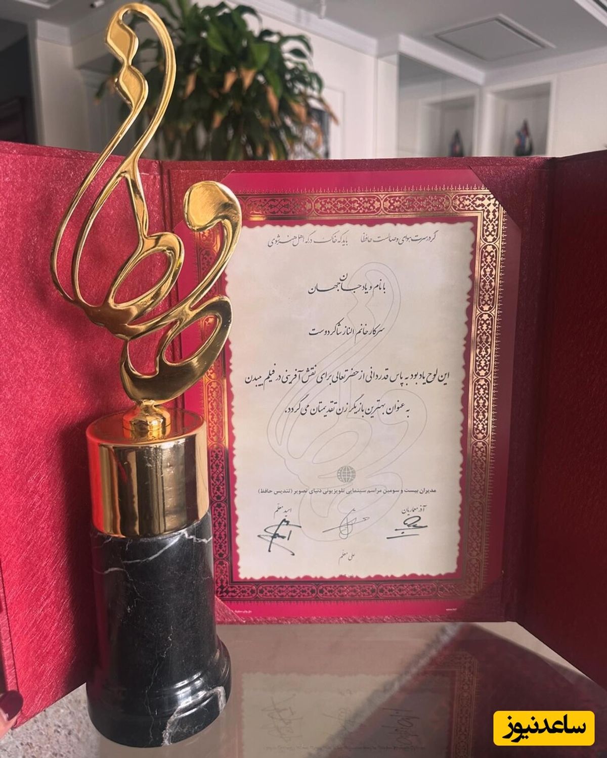الناز شاکردوست، تندیس حافظ را در کنار تصاویر شاعرانه از منزلش به اشتراک گذاشت | جایزه بهترین بازیگر زن و پست کنایهآمیز الناز شاکردوست بعد از تندیس حافظ