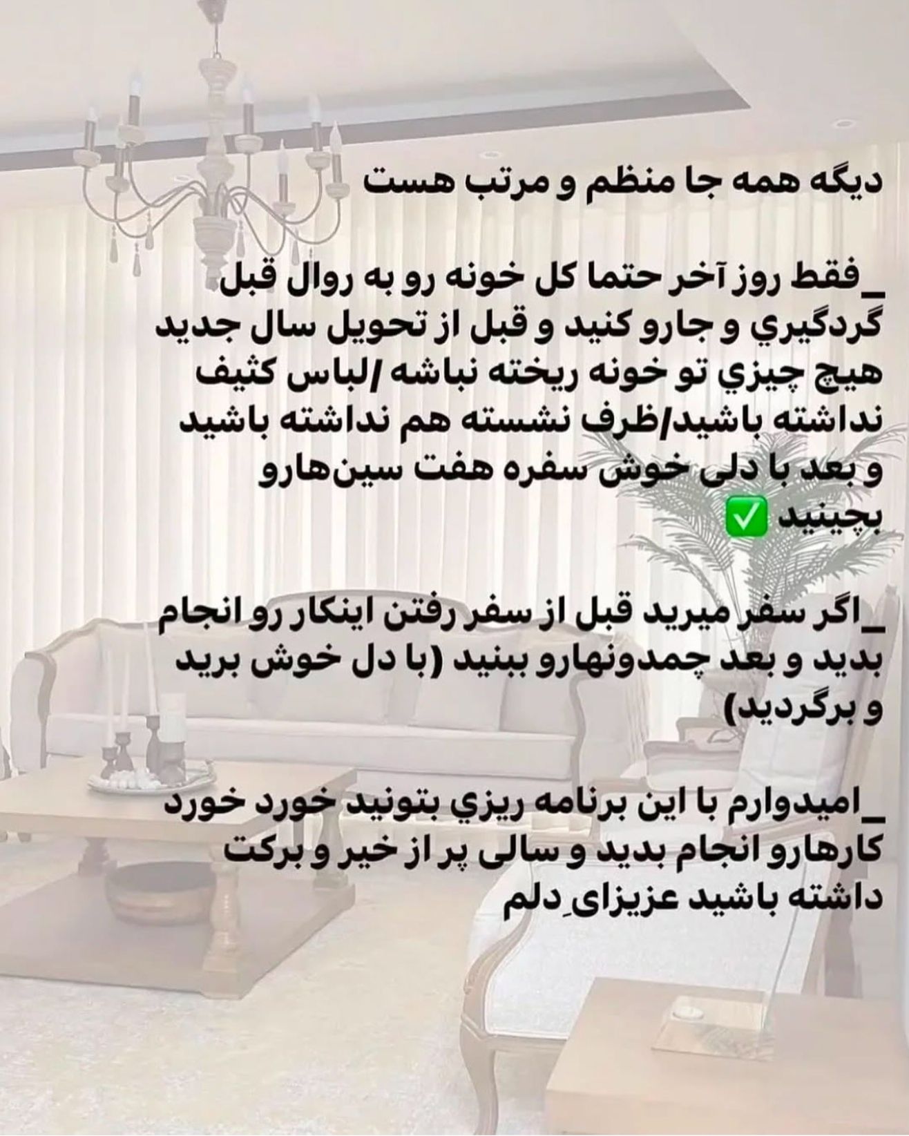 خانهتکانی یکی از مهمترین کارها برای شروع سال نو است. برنامهریزی درست برای این کار میتواند شما را از استرسهای اضافی رها کند و باعث شود به راحتی به نتیجه مطلوب برسید.