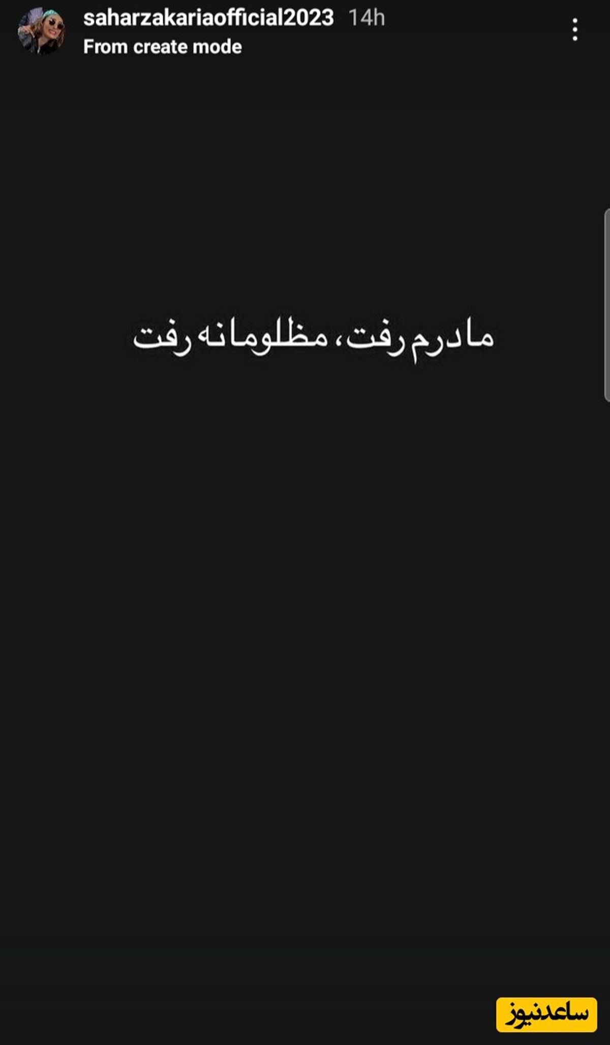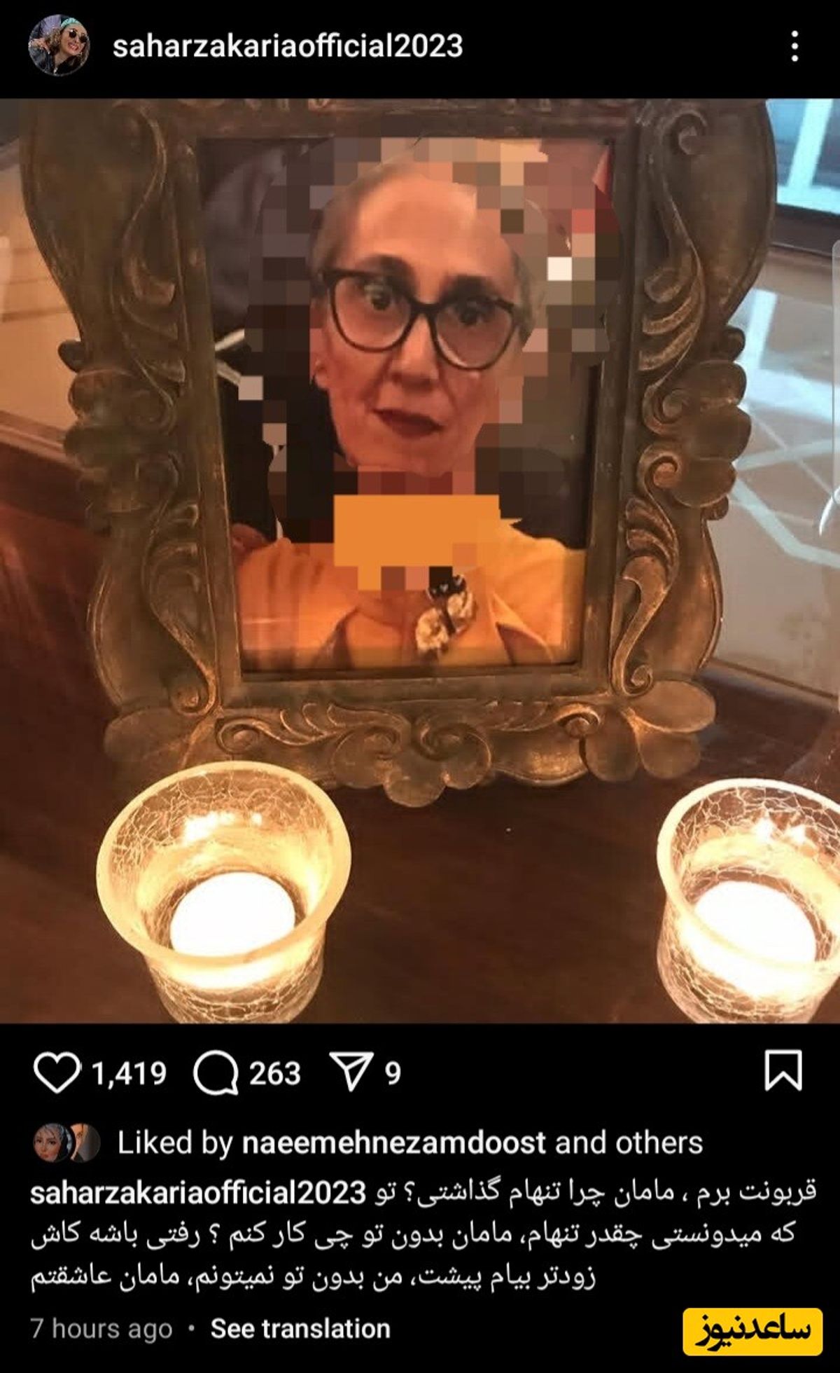 سحر زکریا در اینستاگرامش تصویری از مادرش منتشر کرد و خبر فوت او را رسانه ای کرد و نوشت مادرم مظلومانه رفت.اطلاعات بیشتر را در ادامه ببینید