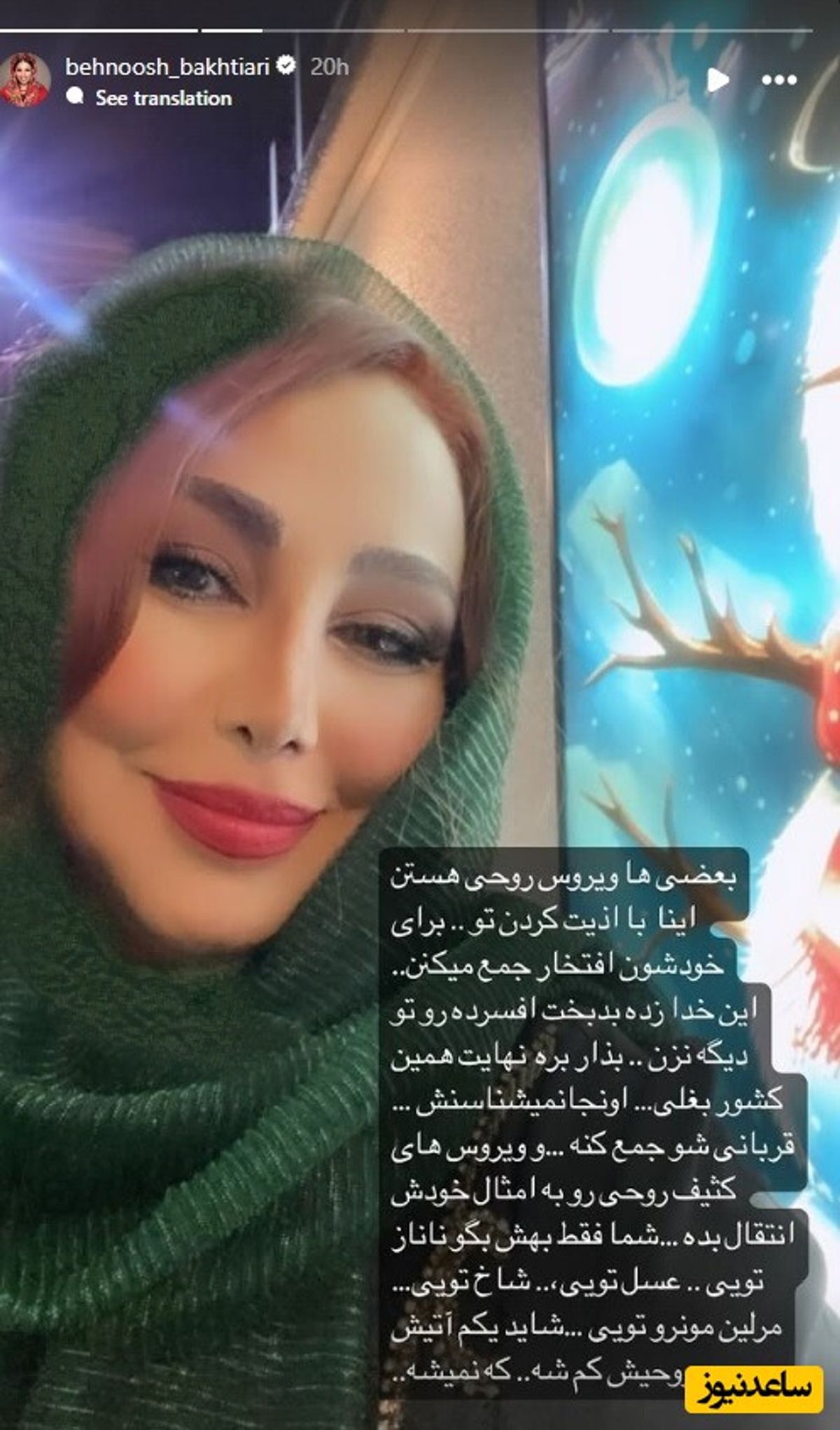 تصویر زیر را بهنوش بختیاری در اینستاگرامش استوری کرده است:
