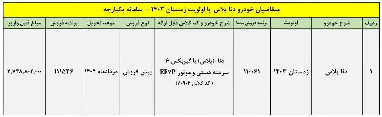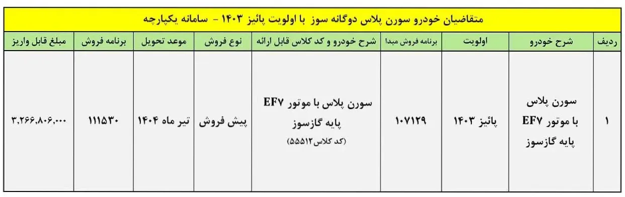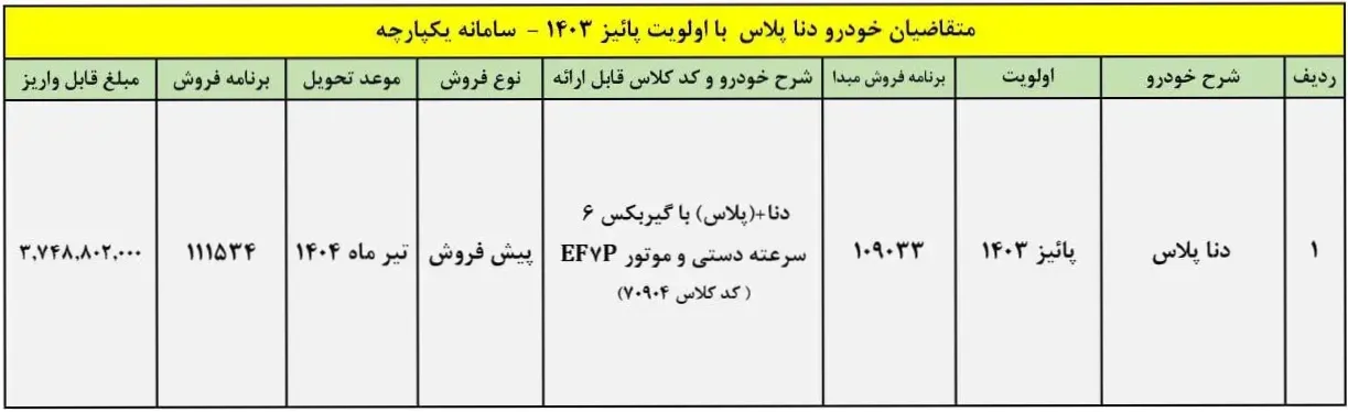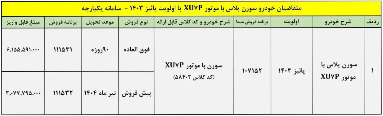 متقاضیان می توانند طی مدت ۱۰ روز با مراجعه به سایت فروش اینترنتی به آدرس esale.ikco.ir نسبت به واریز وجه اقدام نمایند.