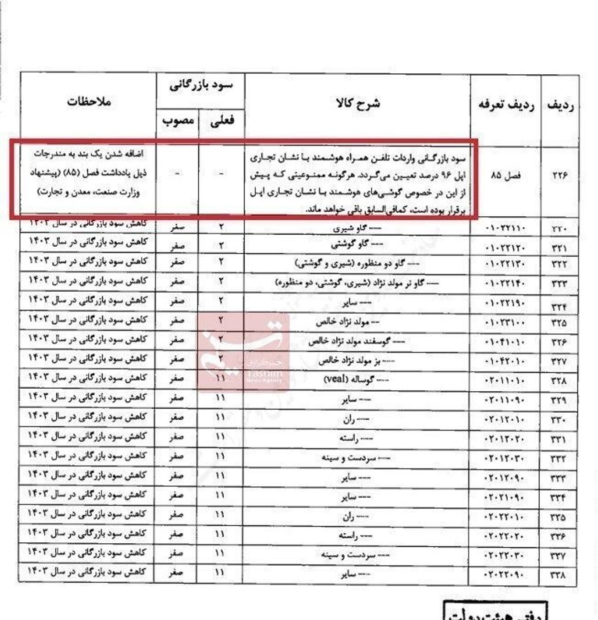 بعد از حواشی مربوط به واردات آیفون رفرش در هفتههای گذشته، در نهایت نظر هیئت دولت با تغییر مقررات مربوط به سود بازرگانی بود و مطابق این نظر، ورود آیفون ۱۴ به بعد را ممنوع اعلام کرد.