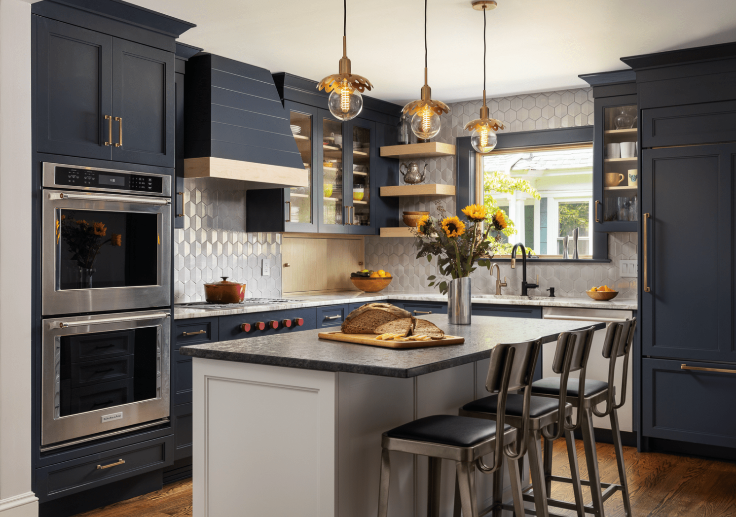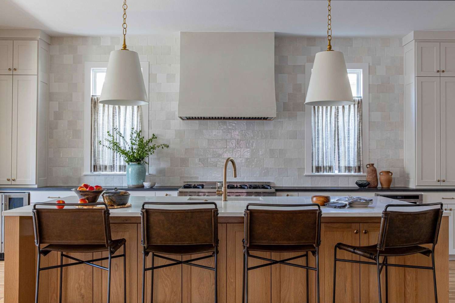 شارون ال شرمن، مالک Thyme and Place Desig، میگوید: کاشیهای بازتابدهنده نور در بین کابینتی میتوانند فضای کوچک را از نظر بصری بزرگتر کنند.