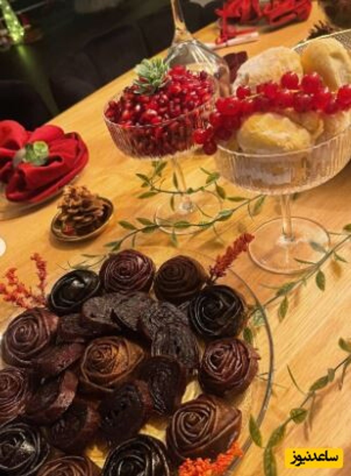 چیدمان زیبا و متفاوت سپیده بزمی پور برای شب یلدا؛ گل کاشته واقعی!
