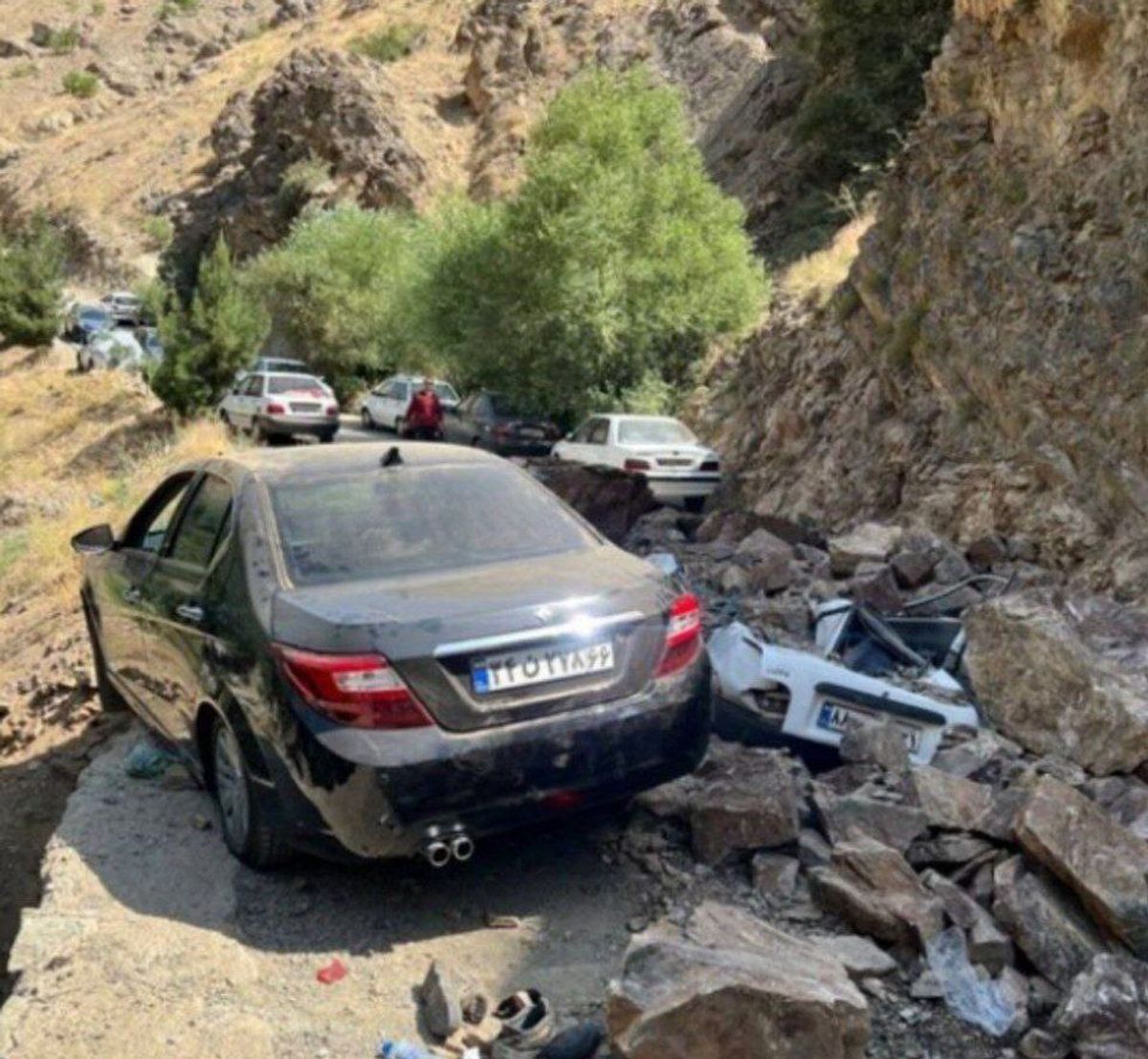 سومین حادثه عجیب امروز در تهران، بعد از فرونشست زمین در ونک و برخورد قطار به سکو در راه آهن با ریزش آوار و سنگ بر روی چند خودرو در سولقان اتفاق افتاد.