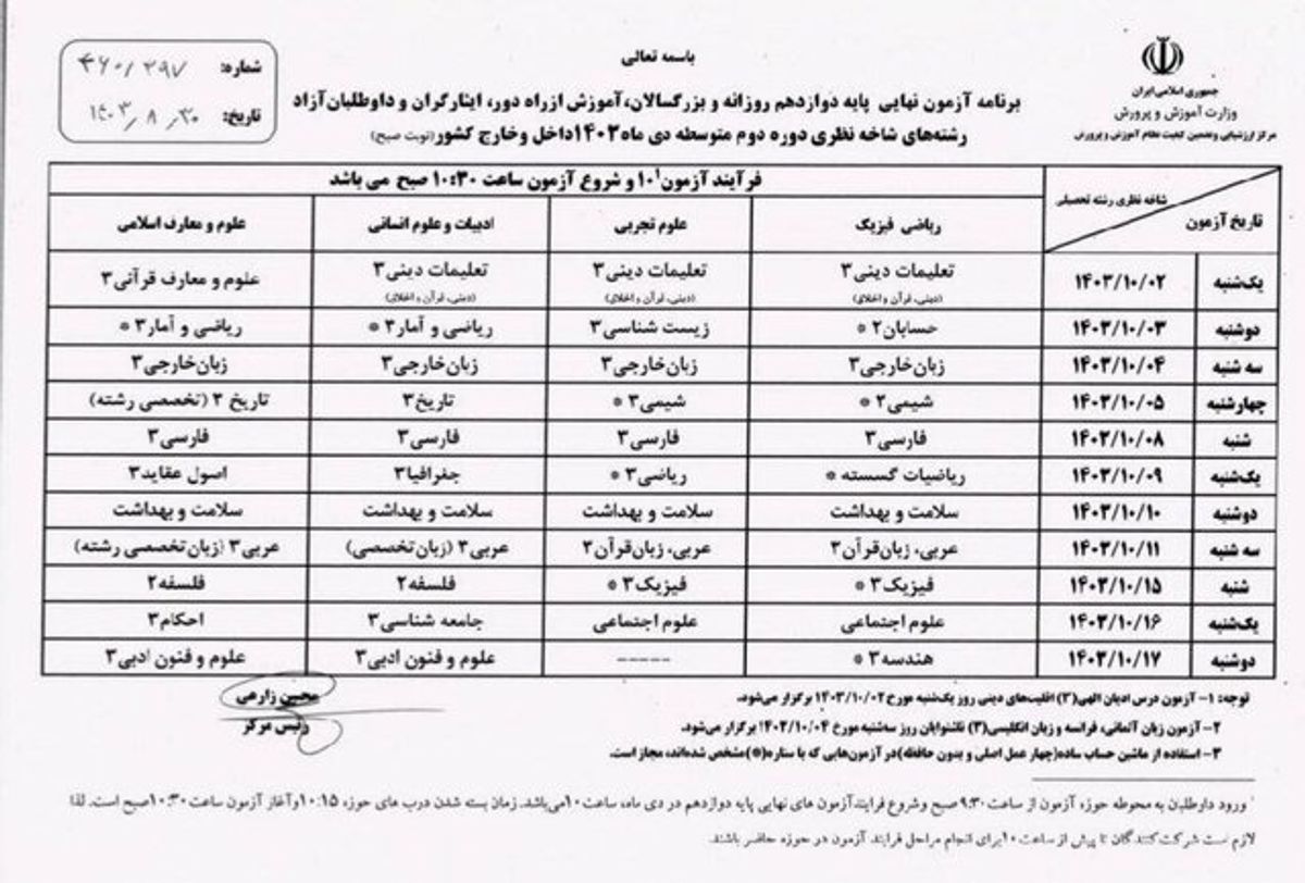 زمان آغاز امتحانات نهایی پایه دوازدهم | تاریخ دقیق برگزاری آزمون نهایی دوازدهمی ها در دی 1403