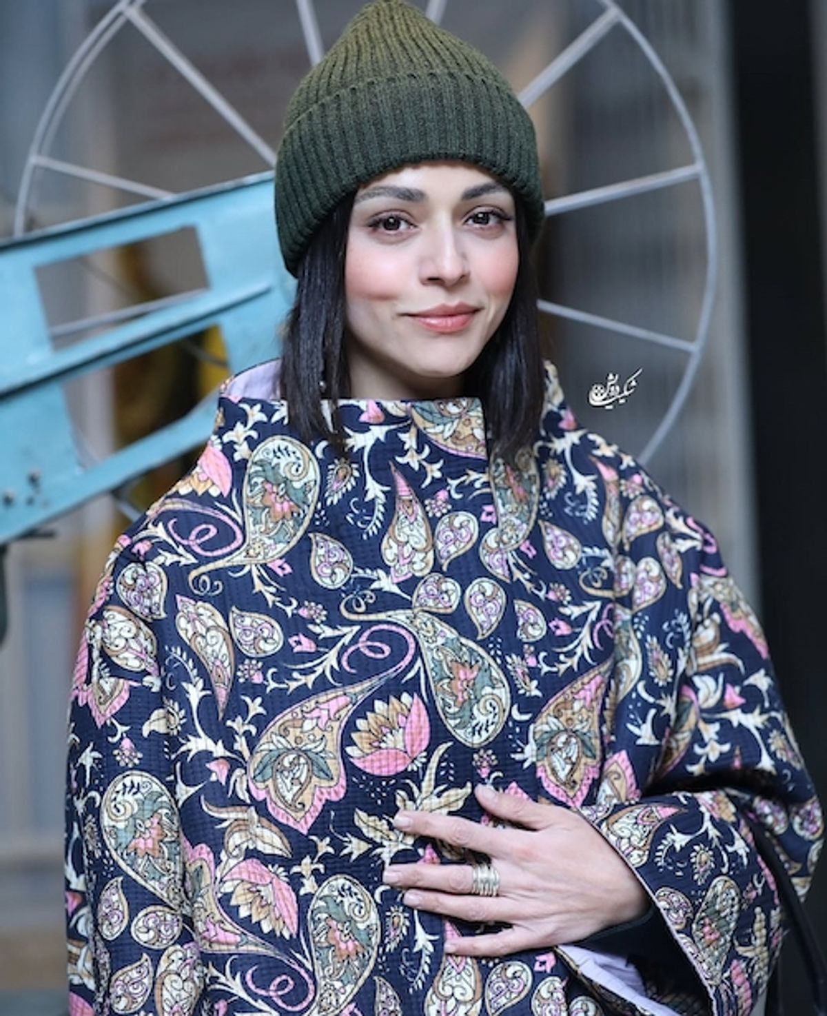 استایل سوگل خلیق با کت طرح بته جقه رنگارنگ | تیپ خاص و متفاوت سوگل خلیق در اکران یک فیلم