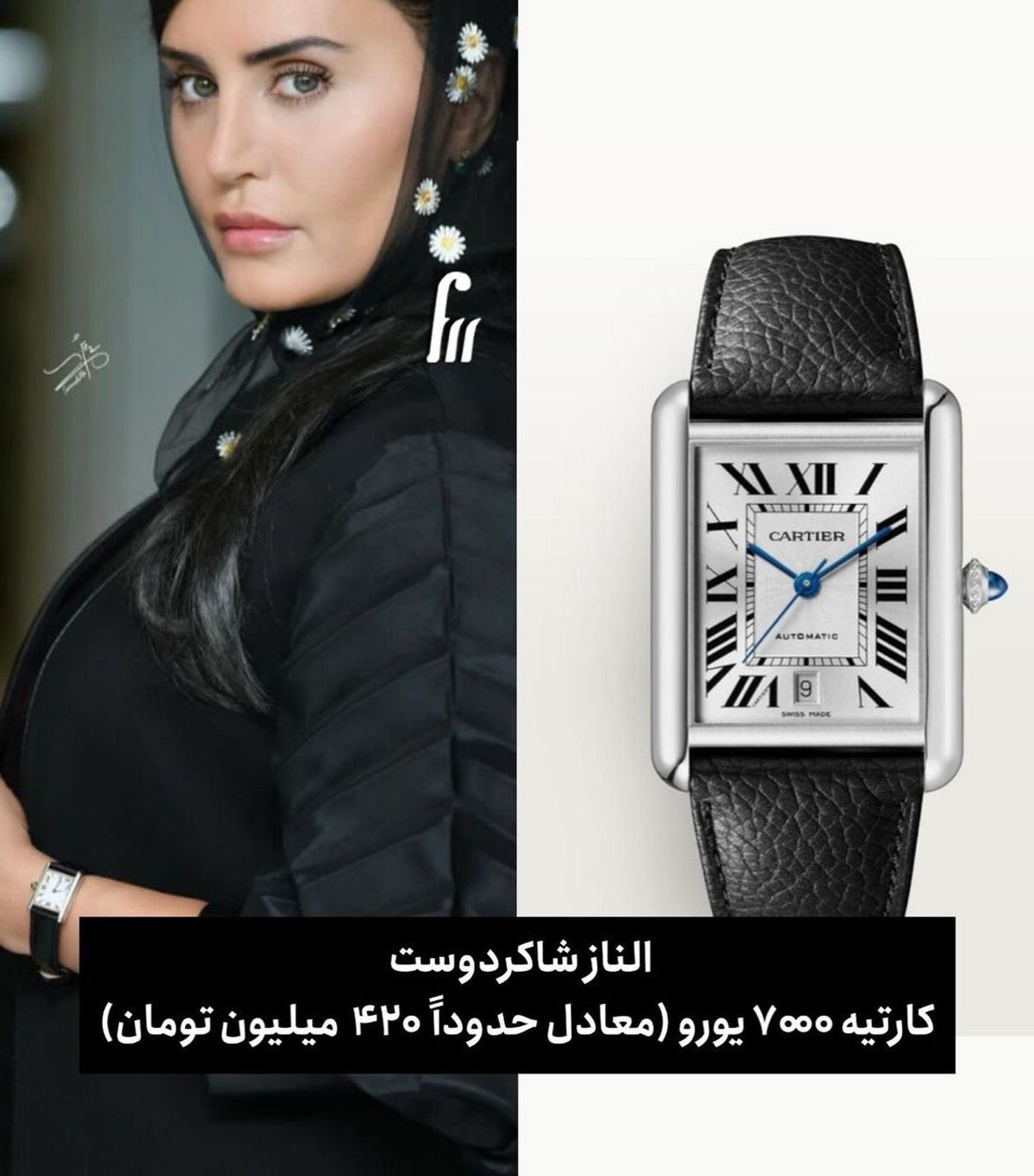 ساعت کارتیه الناز شاکردوست جنجال بسیاری در شبکه های اجتماعی به پا کرده است. قیمت ساعت 7000 یورو معادل 420 میلیون تومان است.