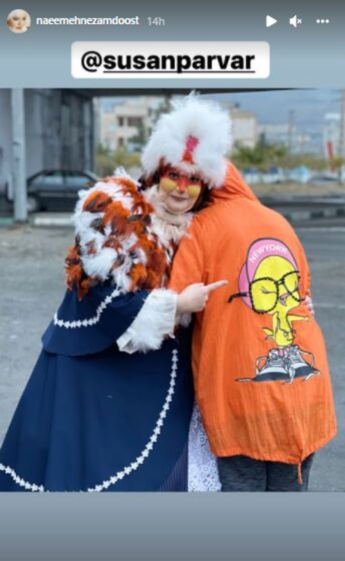 تصویری از نعیمه نظام دوست در حاشیه تصویربرداری برنامه کلبه عموپورنگ را مشاهده می کنید.