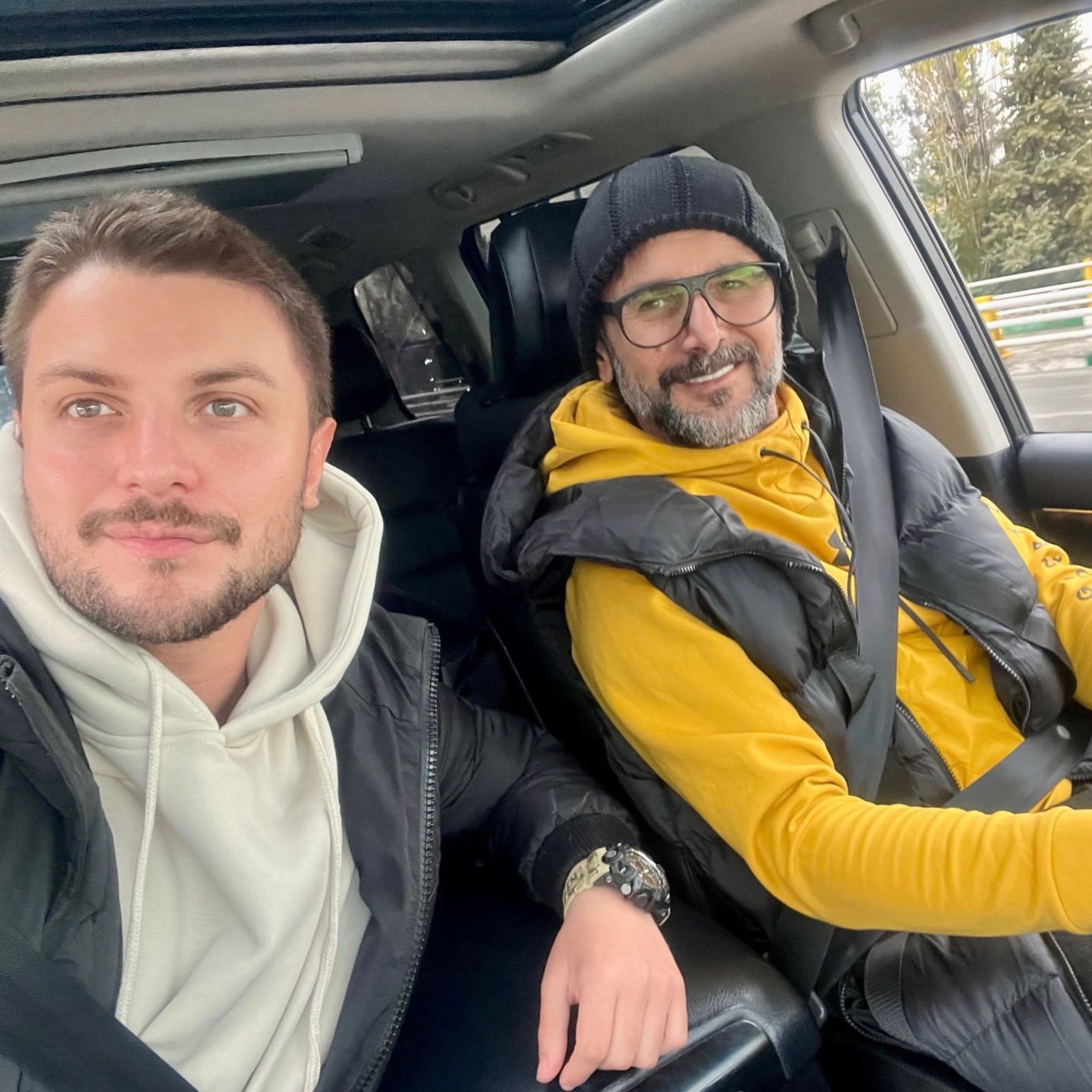 سلفی دونفره دارا حیایی با پدرش اخل ماشین| استایل پاییزی امین حیایی و پسرش