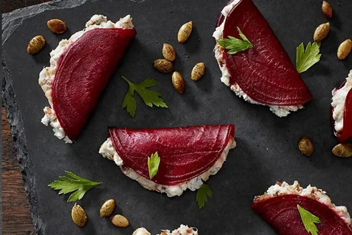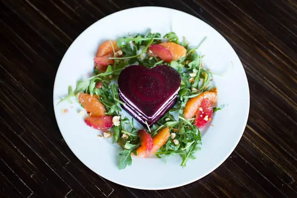 لبوهای قالب زده را به همراه برگهای سبز اسفناج، گردو و انار در سالاد شب یلدا ترکیب کنید. این سالاد هم از نظر طعم و هم از نظر ظاهر، ترکیبی عالی خواهد بود.