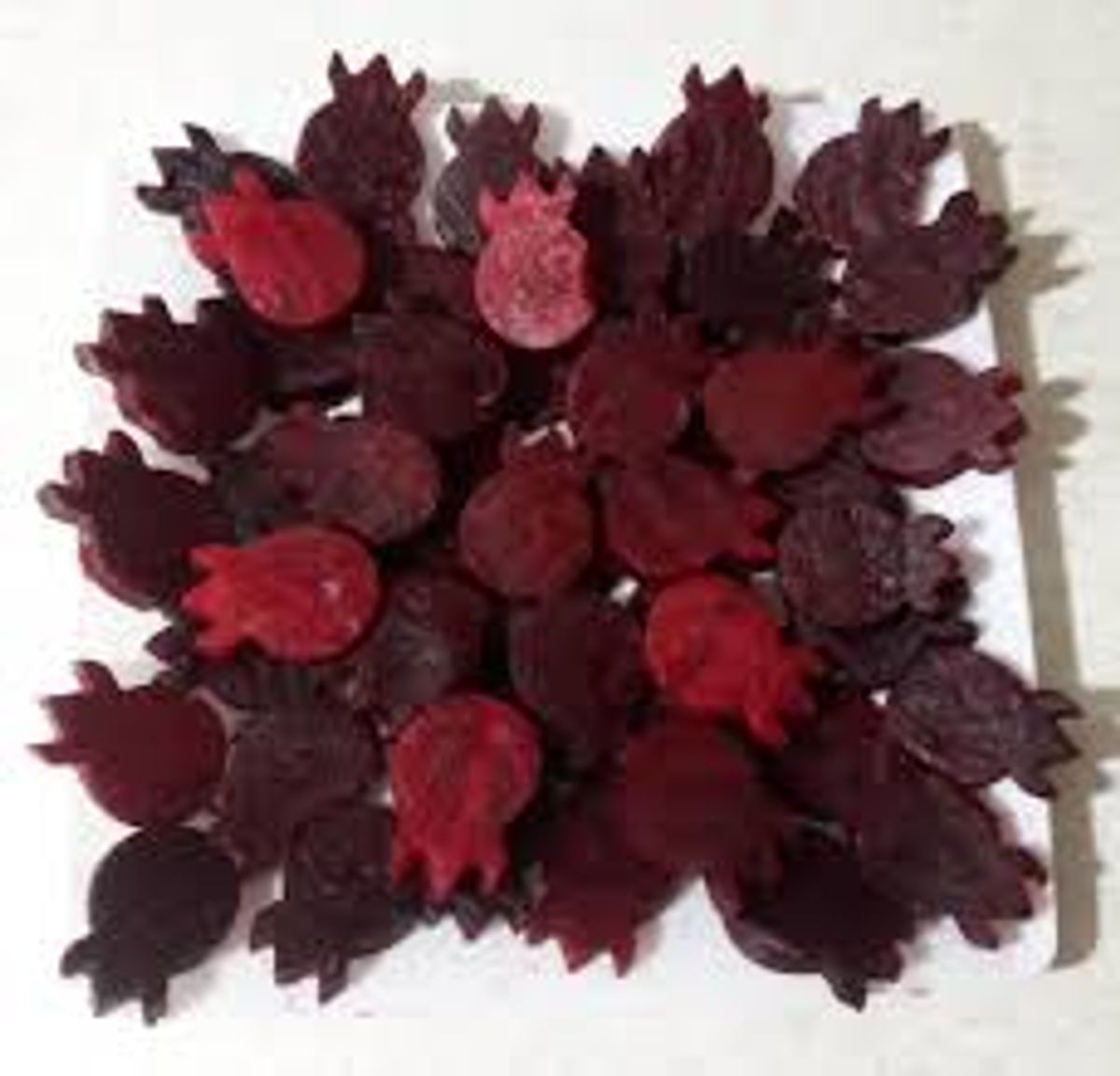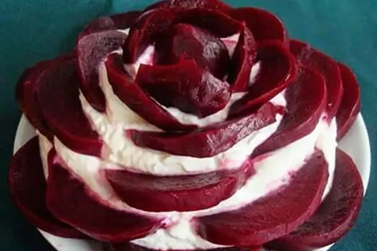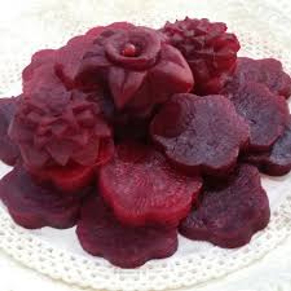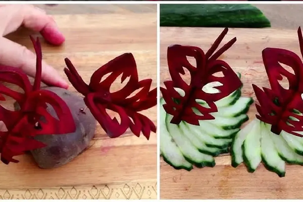 لبو را به شکل حلقههای باریک برش بزنید و با قالبهای فلزی کوچک (مانند قالب قلب، ستاره یا گل) شکل دهید. این قطعات زیبا را میتوانید در کنار سایر میوهها مثل انار و هندوانه روی سفره قرار دهید یا به سالاد اضافه کنید.