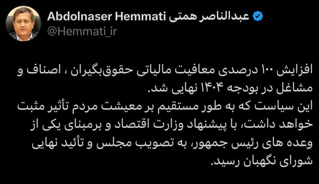 وزیر امور اقتصادی و دارایی از افزایش معافیت ۱۰۰ درصدی مالیاتی حقوق بگیران، اصناف و مشاغل در سال آینده خبر داد.