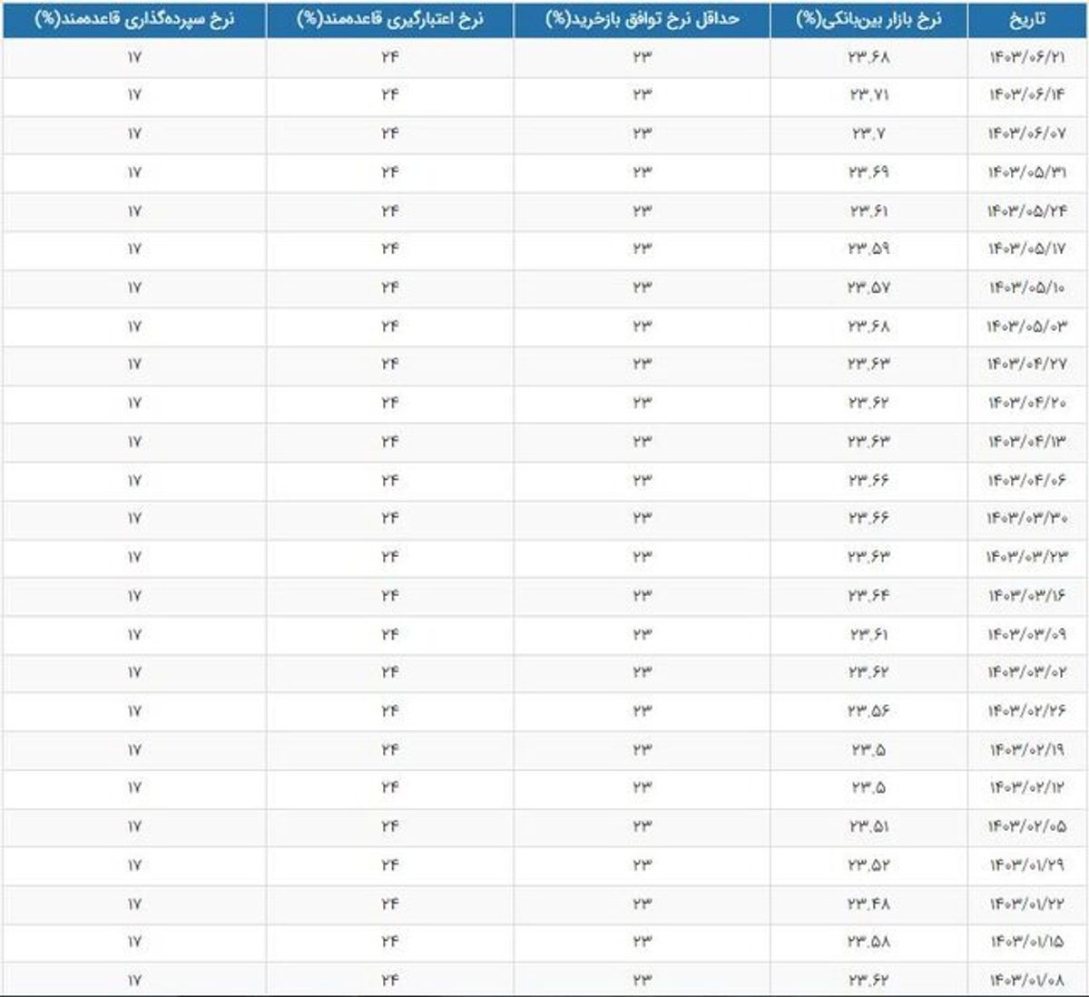 کاهش نرخ بهره بین بانکی در شهریور 1403 | آخرین آمار نرخ سود بانکی+جدول تغییرات